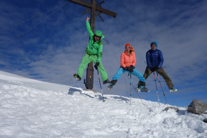 Start um 9:15 in St. Antönien bei bedeckten Himmel. Weg zum Gemstobel hatte sehr gute Spur, Steilstufe hatte tiefe Tritte. Steigeisen und Pickel hätte es nicht gebraucht. Auch Gemstobel bis gute Spur, die letzten 100hm Spur teils eisig/weggeweht. Dank massiver Wetterbesserung, blauer Himmel und beste Fernsicht am Gipfel um ca. 13:30. Viele Geher von St.Antönien und Lindauerhütte.
