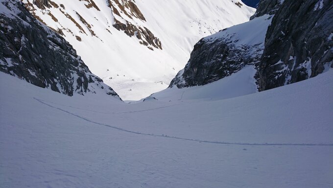 Unten besser, da es sich in kompaktem Pulver 10-20cm bestens spuren lies. Nach oben hin immer mühsamer, da man gelegentlich rutschte auf harter Unterlage.