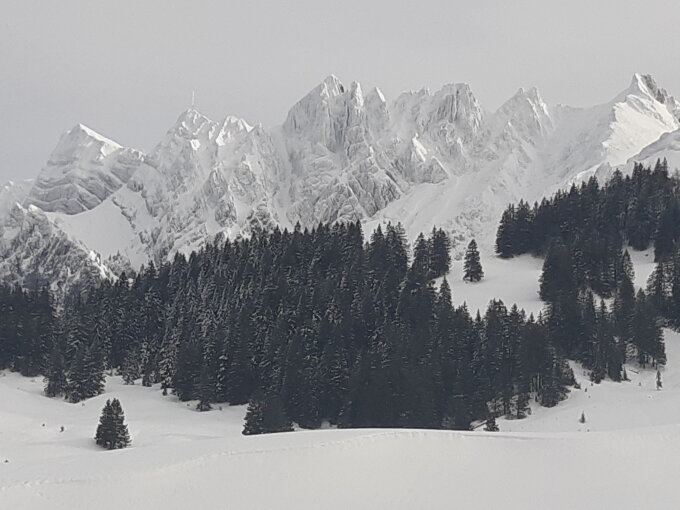 Weiter unten trägt der Deckel nicht...und es wechselt grausiger Bruchharsch mit Pappschnee..also gut 200 Hm sind nix der Rest schön...