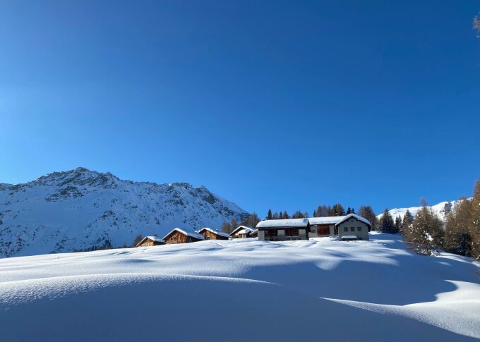 Ganz anders die Abfahrt: von oben bis unten zum Auto 1.400 Hm Pulverschnee und herrliches Panorama