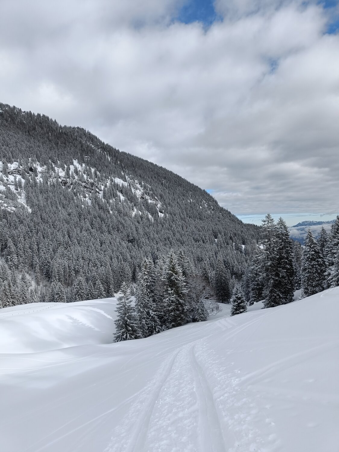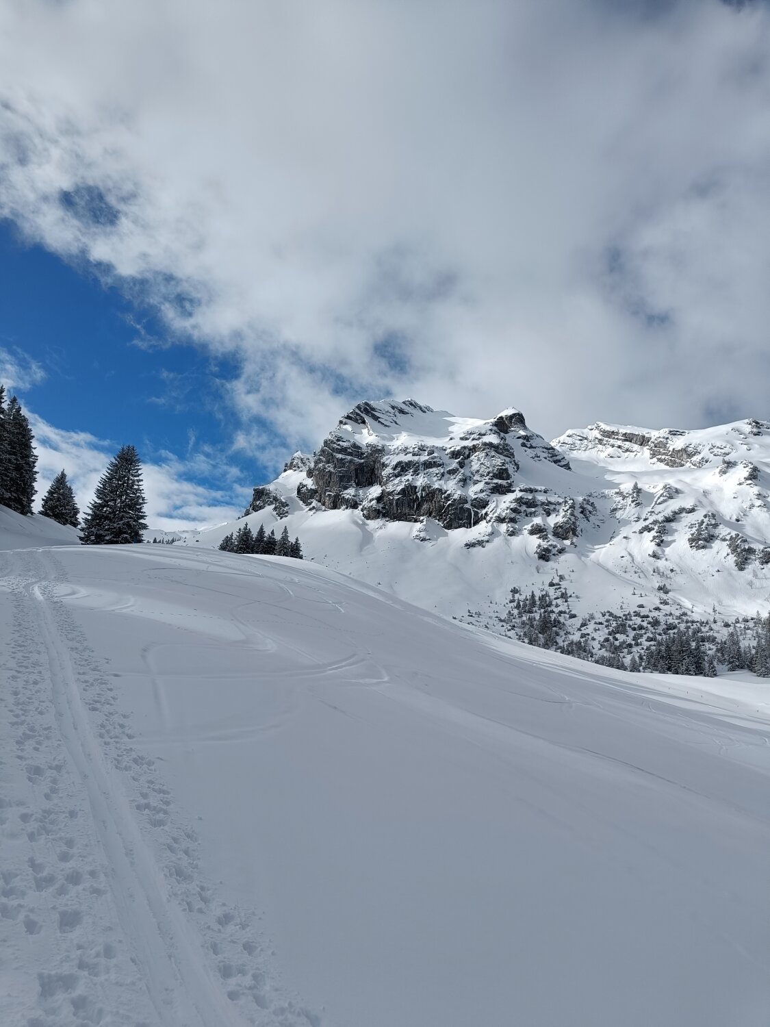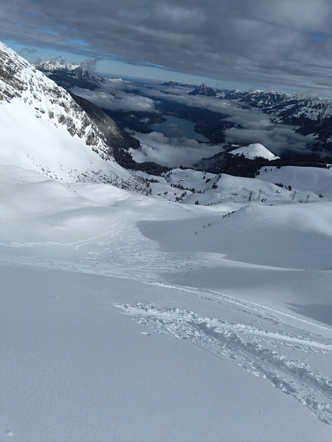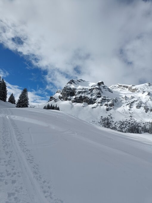 Verhältnisse oberhalb der Fluonalp genial. Feinste Abfahrt der Saison. Daher ausgezeichnet. Darunter geht's halt dem Weg/Strasse entlang und schon teils hart und holprig.