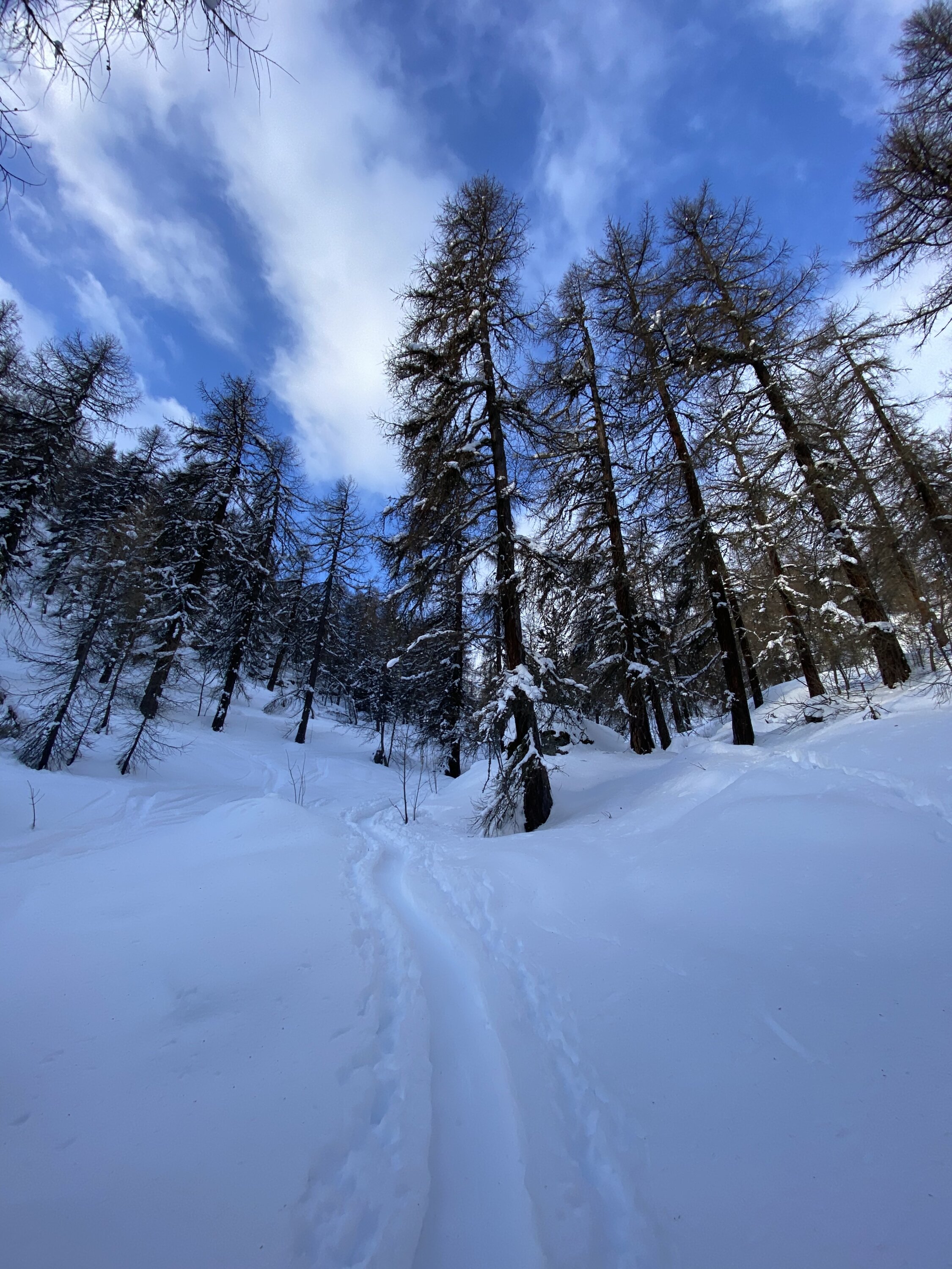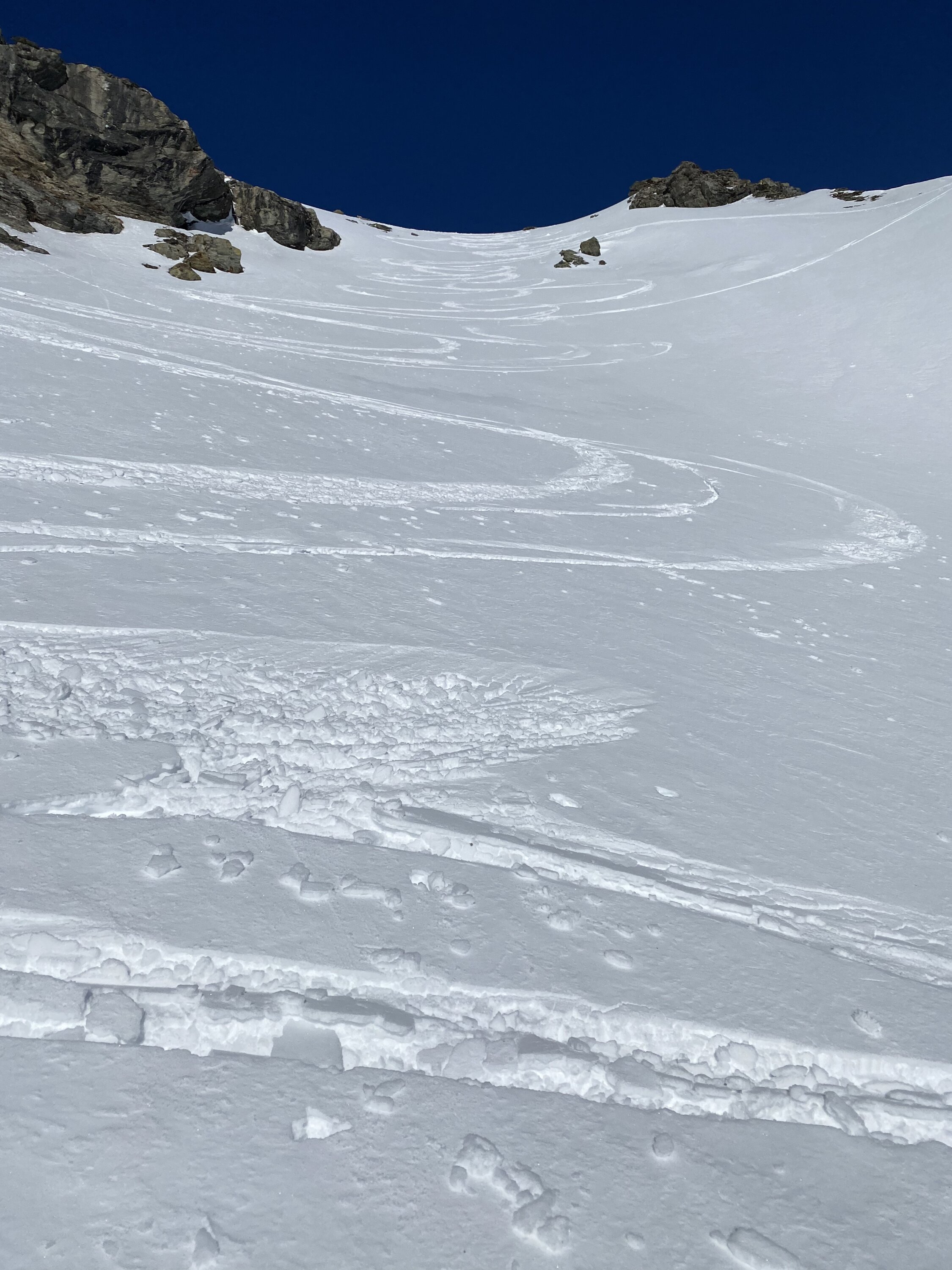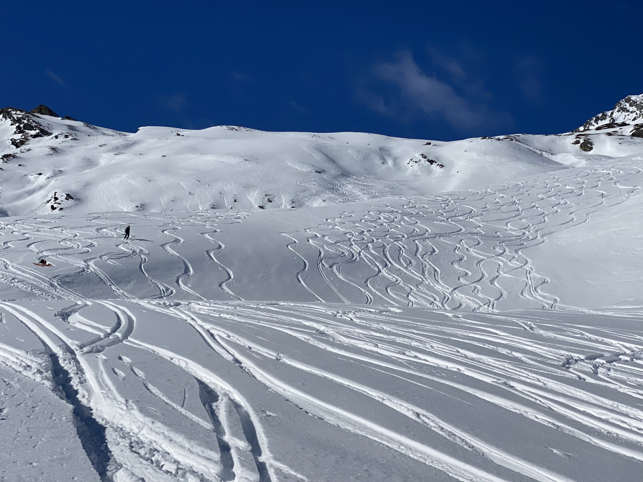Good conditions, fresh snow under the top, crusty snow near Grevasalvas village