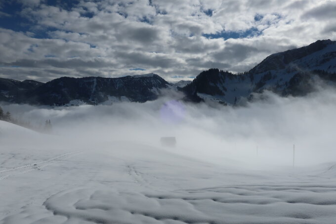 Hmm: Die Schneehöhenkarte des SLF sieht da im Bereich Beichle eine Schneehöhe von über einem Meter. Nie und nimmer. Auch der Talboden im Entlebuch bei Escholzmatt ist aper. Ich habe das Gefühl, so supergenaue, aber auf Alghoritmen berchnete Karten suggerieren oft eine falsche Präzision vor.