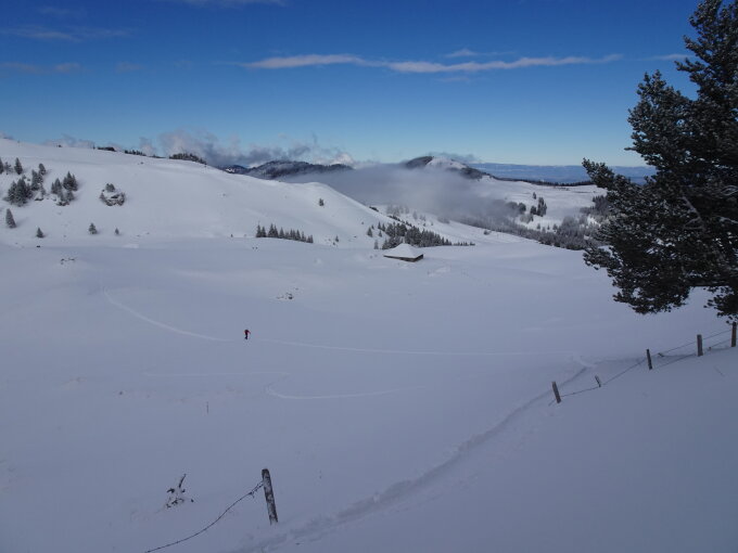 Ab Wasserscheide mit Abfahrt über Oberwirtnere und weiter zur Skilift-Talstation