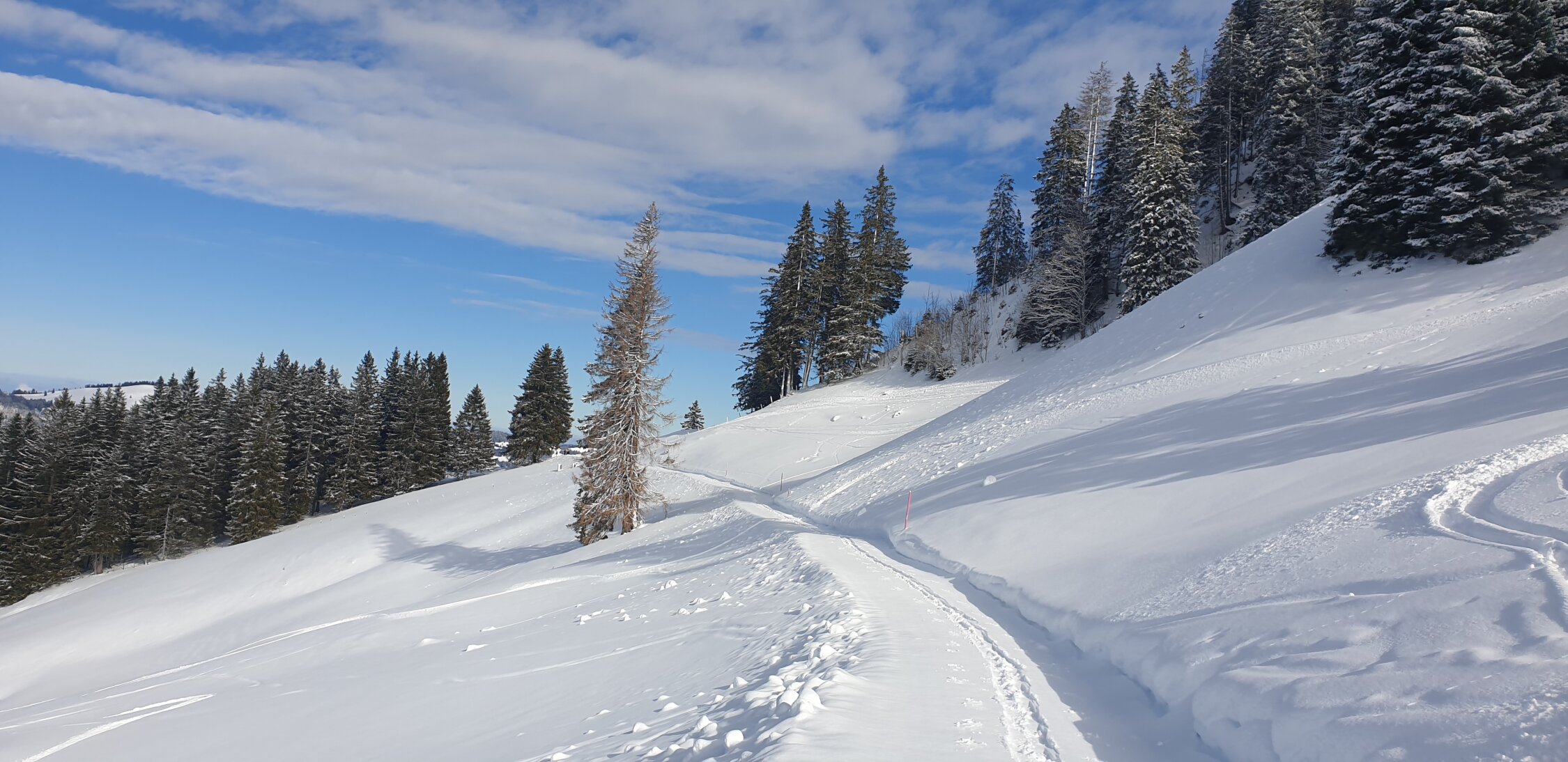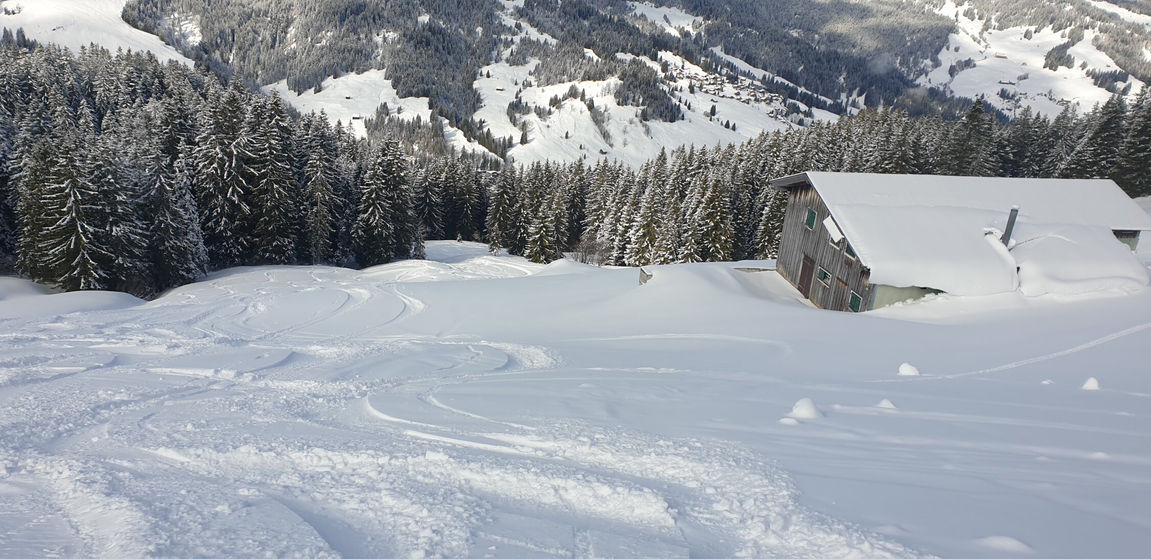 Start der Tour am 11 Uhr bei -1 Grad, das Wetter immer schöner gegen Mittag, unten 5 - 20 cm Pulverschnee auf guter Unterlage, heute ging es auch gut mit den Ski bis zum Gipfel aufzusteigen, kurze rassige Skitour