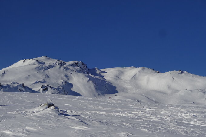 Die Verhältnisse waren von unten bis oben ausgezeichnet. Obwohl viele Hänge schon arg umgepflügt sind, machte die Abfahrt immer noch viel Spass. Der Gipfelbereich ist abgeblasen, weshalb viele die Skier etwas unterhalb deponierten.