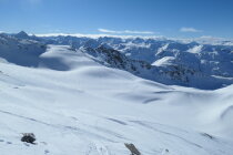 Schnee gut gesetzt, nur direkt am Grat oben etwas abgeblasen.