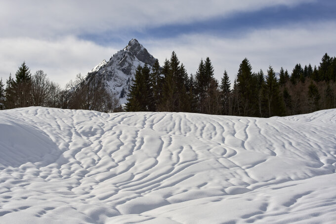Die Tour ist durchgehend mit Schii begeh- und befahrbar. Markante Wasserrillen bis auf 1300 m.ü.m. Schneeschuh Trail gut gespurt. Ab Abzweig Fuchser bis zur Hütte bei Pkt. 1370 keine Spur vorhanden. Ab da wieder gut gespurt bis zum Gipfel. Abfahrt: Oben Hart mit einem ca. 1cm Pulverauflage. sehr schön zu fahren. Nach dem Waldstück zunehmend Hart mit Wasserrillen etwas holperig zu fahren bis zum Wanderweg. Über diesen eher mühsam bis zum Ausgangspunkt.