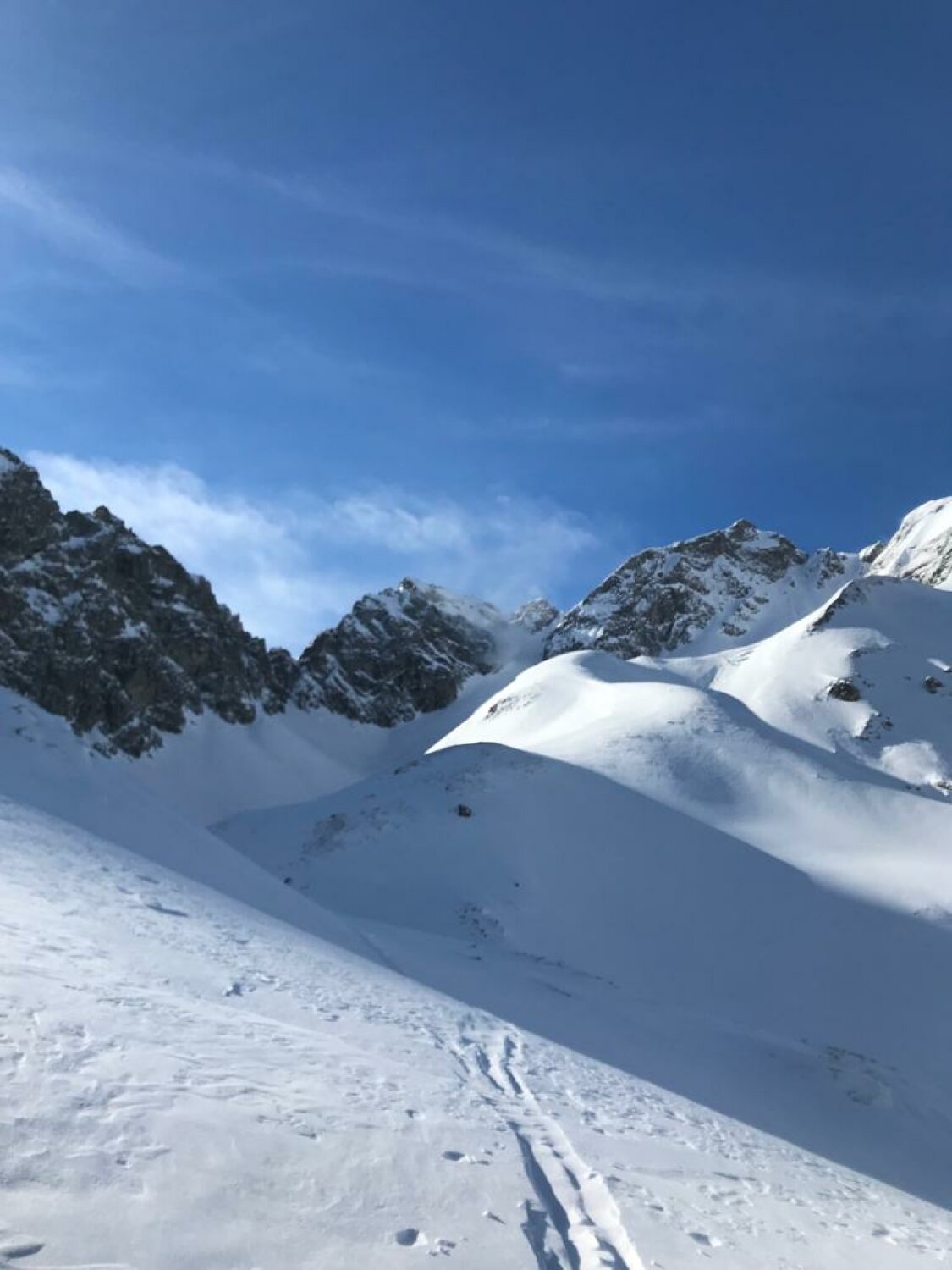 Eigentlich hatten wir den Liechelkopf geplant aber in der Ostrinne 100hm vor der Scharte umgedreht da zu viel Triebschnee. Dann eben den Elfer noch mitgenommen.
