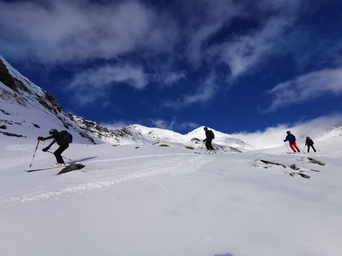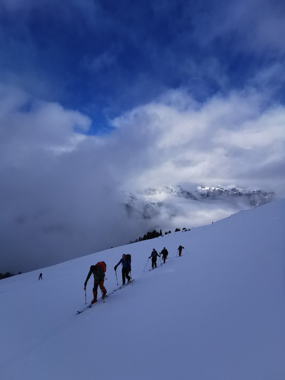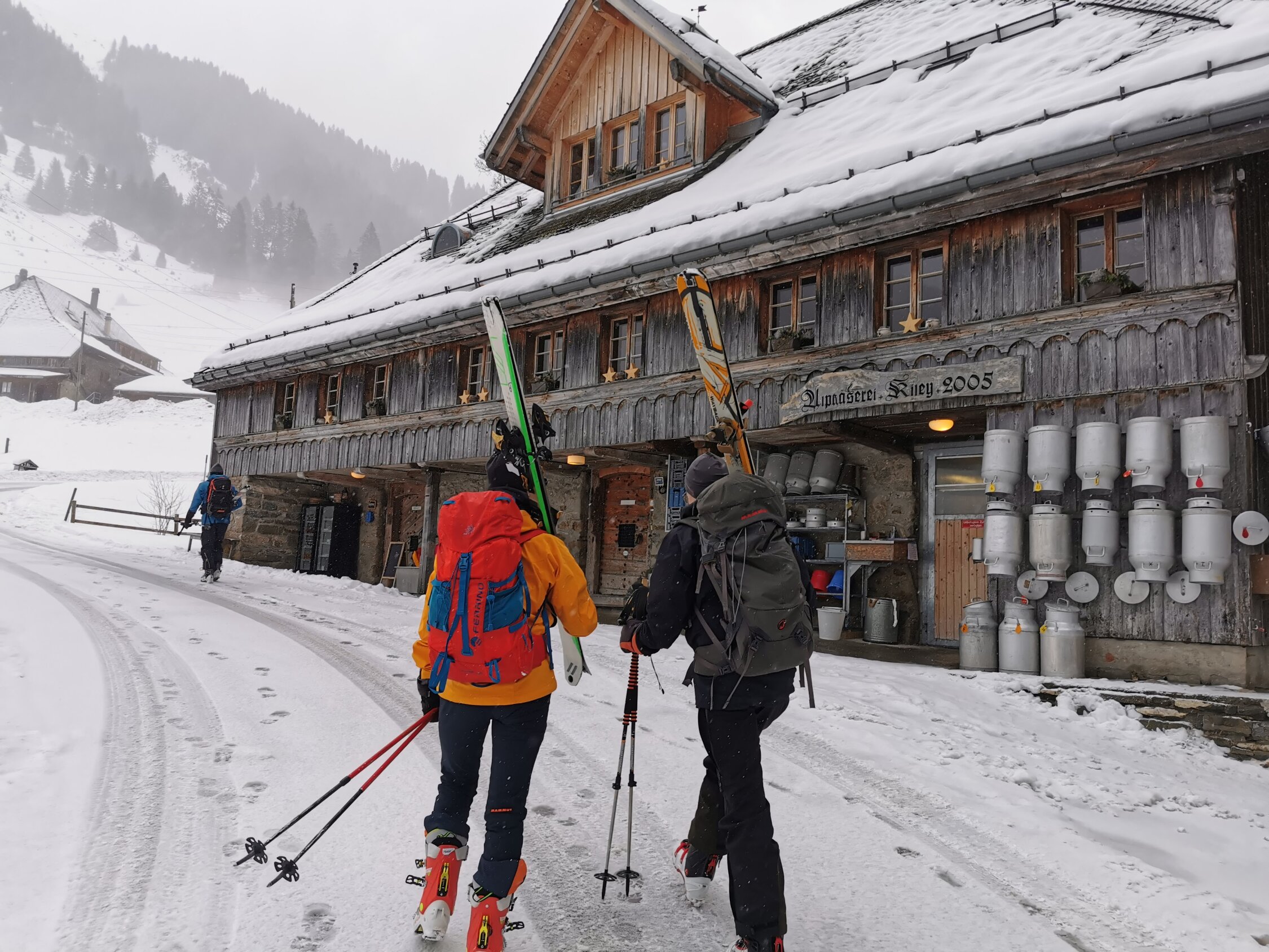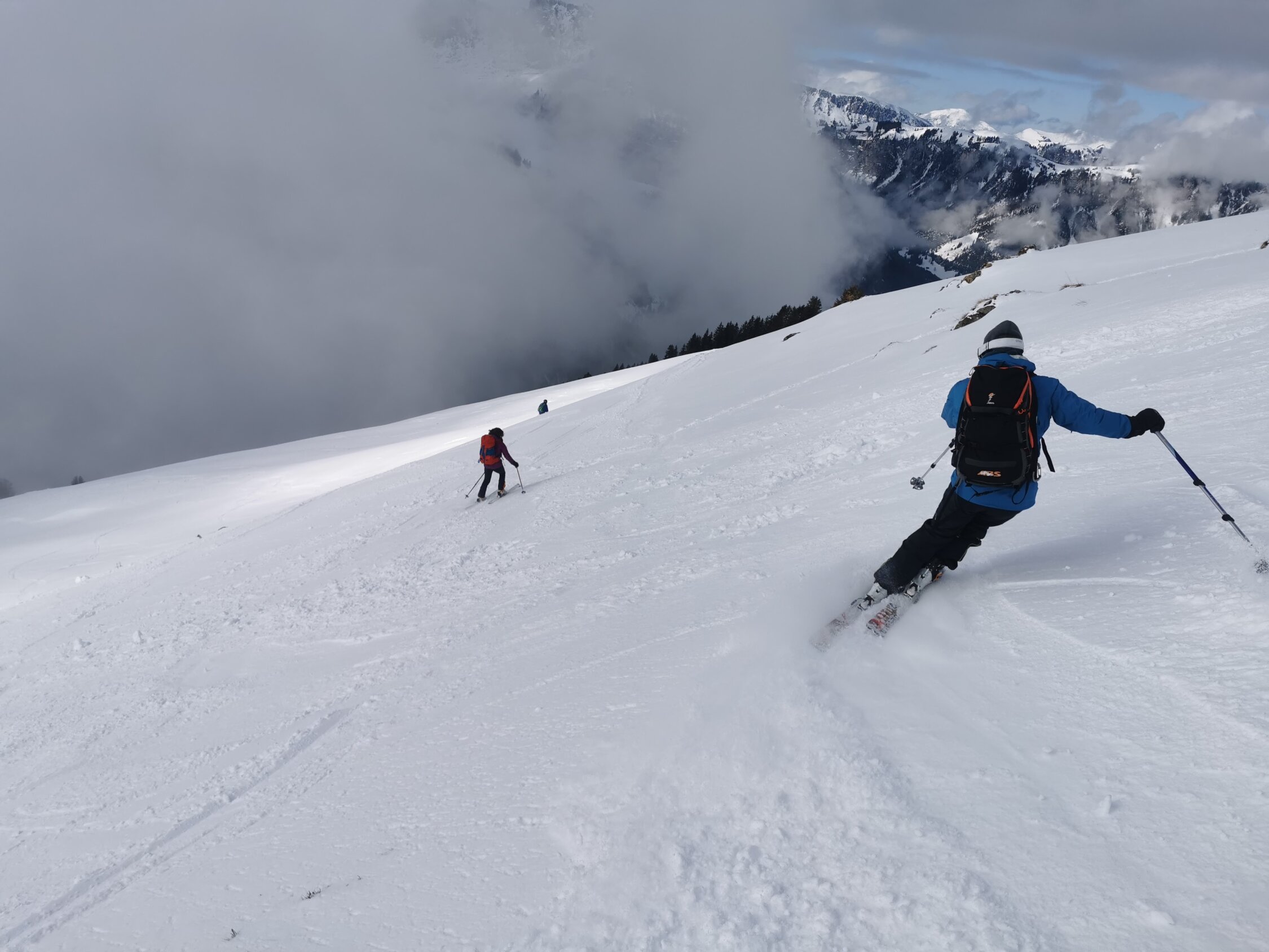 Etwas weniger Schnee als erwartet, aber zum guten Teil gute Schneebedingungen mit nur z.T. zerblasenem Schnee und über größere Strecken noch Pulverschnee. Gipfelgrat leicht eisig, aber mit etwas Vorsicht auch gut machbar. Nach Abfahrt noch Teilaufstieg Richtung Männlifluh gemacht.