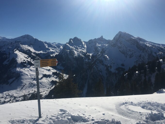 Das "ausgezeichnet" bezieht sich auf den oberen Teil zwischen Sennhütte und Gipfel. Dort weitgehend Pulver auf harter Unterlage, allerdings nicht ganz so schön wie am Niederhorn (wo ich heute vorher war).