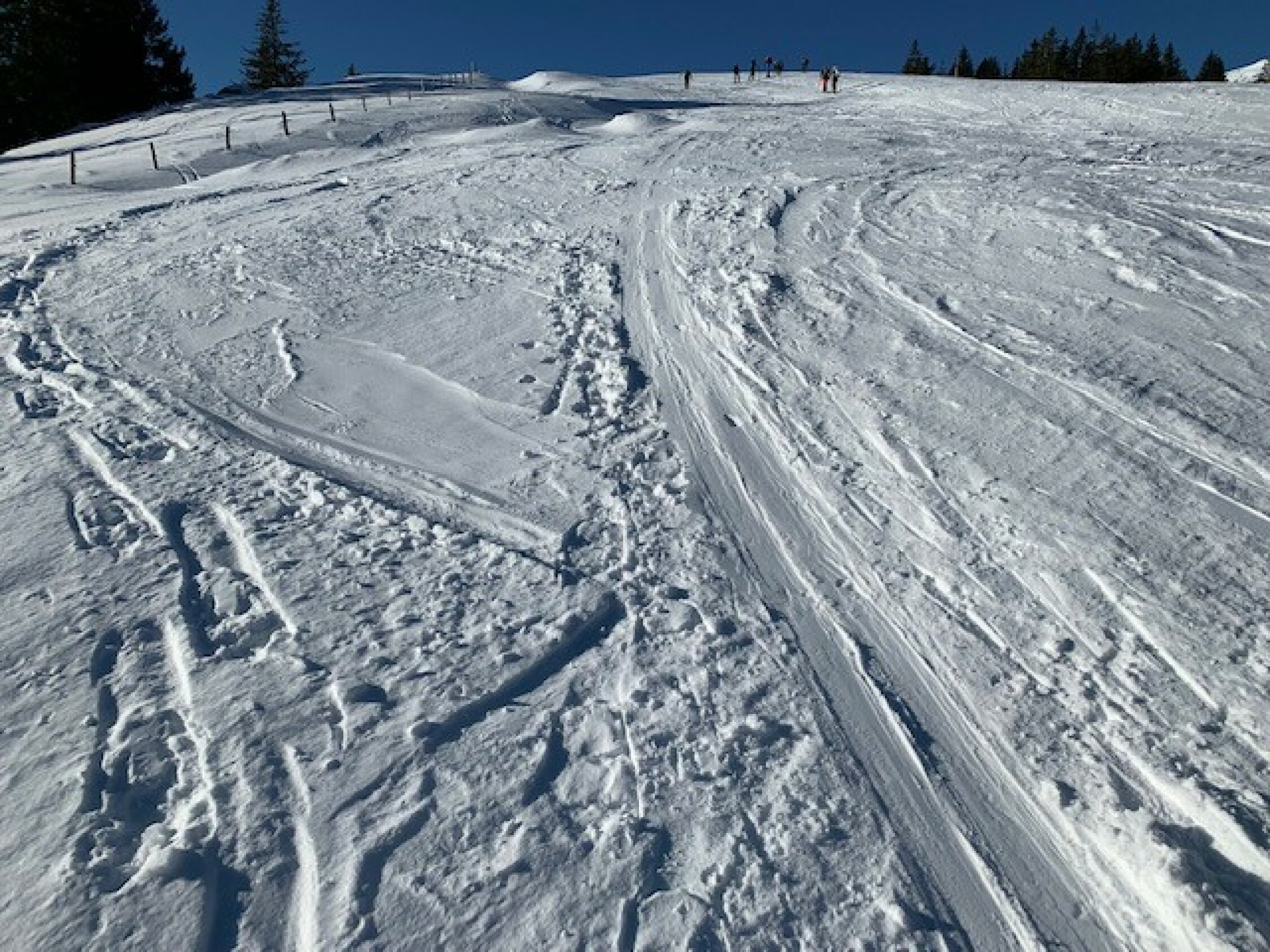 Start um 09.30 Uhr in der Hirsegg. Aufstieg über Stächelegg (Abbildung 01 | Foto A/B) bei sehr guter Spur. Leichter Wind und harte Spur. Aufstieg Richtung Waldschneise (Abbildung 02 | Foto C) Spur leicht aufgesult und warme Temperatur mit maximaler Sonneneinstrahlung. Aufstieg durch den Wald, Spur aufgesulzt. Oberhalb Wald bis zum Gipfel ist die Spur sulzig (Abbildung 03 | Foto D). Einige Tourengeher hatten "Stoglä" an den Fellen. Aufstieg bis zum Gipfel sehr warm und problemlos machbar. Auf dem Gipfel viele Leute und windstill. Bei der Abfahrt (Abbildung 04 | Foto G) Richtung Silwängen bei super schönem Sulzschnee - perfekt! Anschliessend über die Stächelegg zum Parkplatz, da sind pistenähnliche Verhältnisse mit harter Unterlagen. Diese Tour war wirklich ein "Traum".