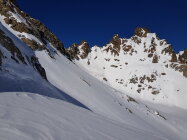 Wie erwartet hat es an der Port d'Es-cha viel Triebschnee reingeblasen, war defintiv zu heikel diese Passage heute zu begehen, bin deshalb unter der Port d'Es-cha umgekehrt, da bis da Hänge relativ flach bis da kein Problem.