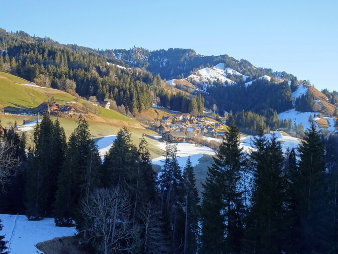 Eriz-Linden 1000 m. - Rüttegg 1023 m. - Vorder Schöriz 1304 m. - Stouffe 1511 m. - Under Schöriz1223 m. - Innereriz Säge 1040 m.