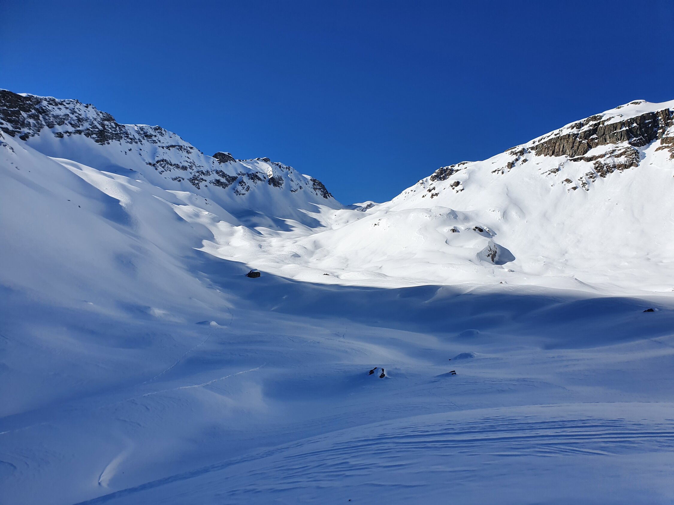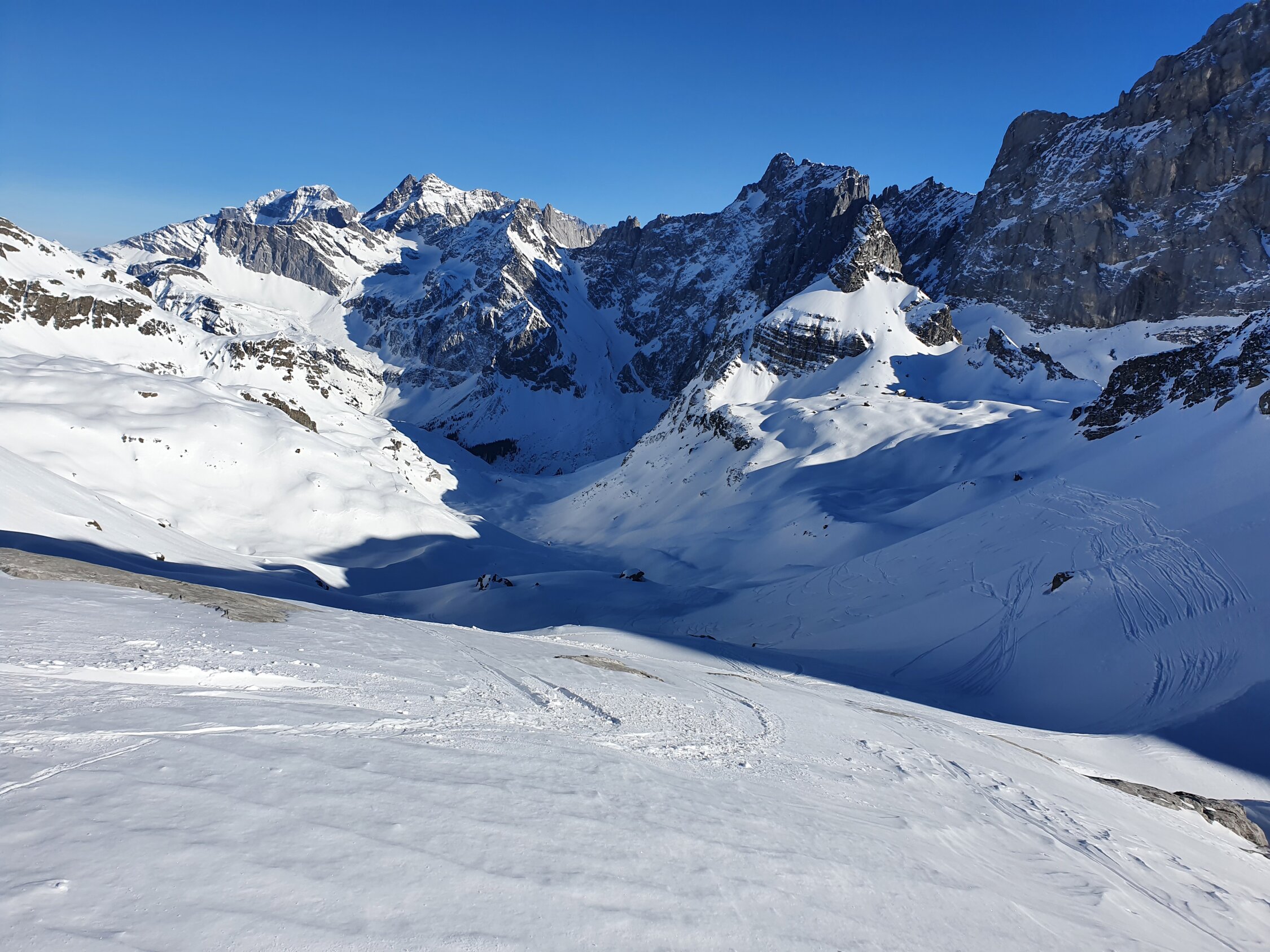Abfahrt: Vom Gipfel bis Flösch Pulver, danach leichter Deckel bis Brunni. Die Piste von Brunni bis Unterschächen ging für die Abfahrt ohne viel Stossen!