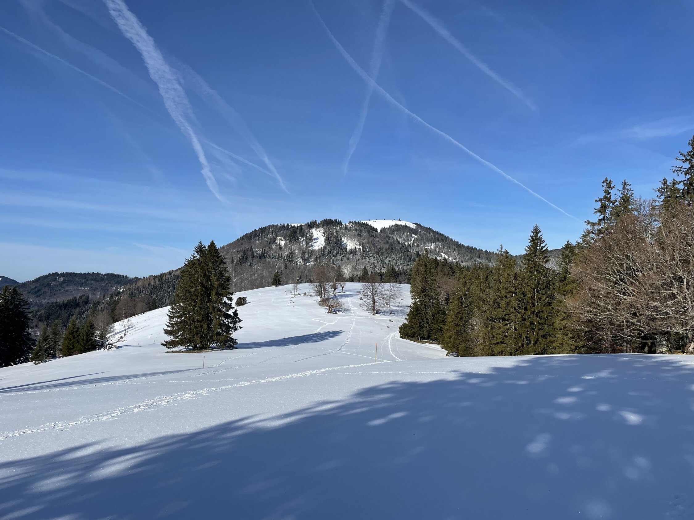 Selten, selten sind solche Tage, an denen es perfekt ist. Heute durfte ich einen solchen erleben und diese landschaftlich wunderbare Tour machen, die nur selten im Jahr gute Verhältnisse hat. Heute bombenfeste Unterlage mit einem Hauch Pulver drauf, beim Start -1 Grad, am Gipfel saukalter Wind aus Richtung Putin, von dem kommt momentan sowieso nicht viel Gutes. Abfahrt halt mit dem Unterbruch der Gehstrecke der hohen Stuhlsebene, aber wie schön war es da heute! Untere Hänge perfekt bis zum Auto.