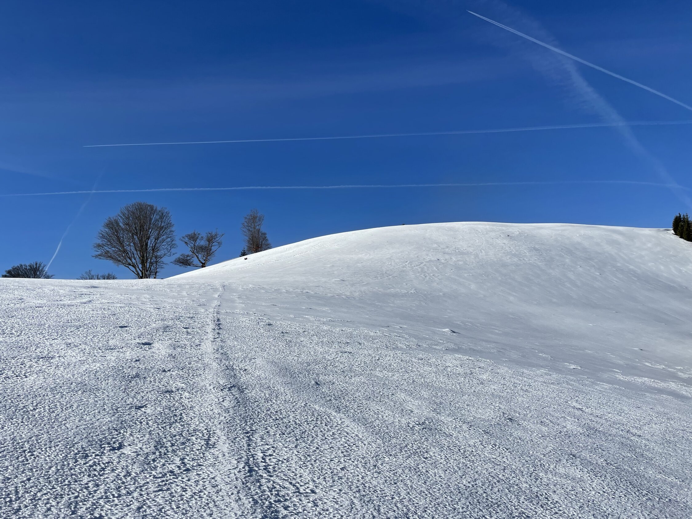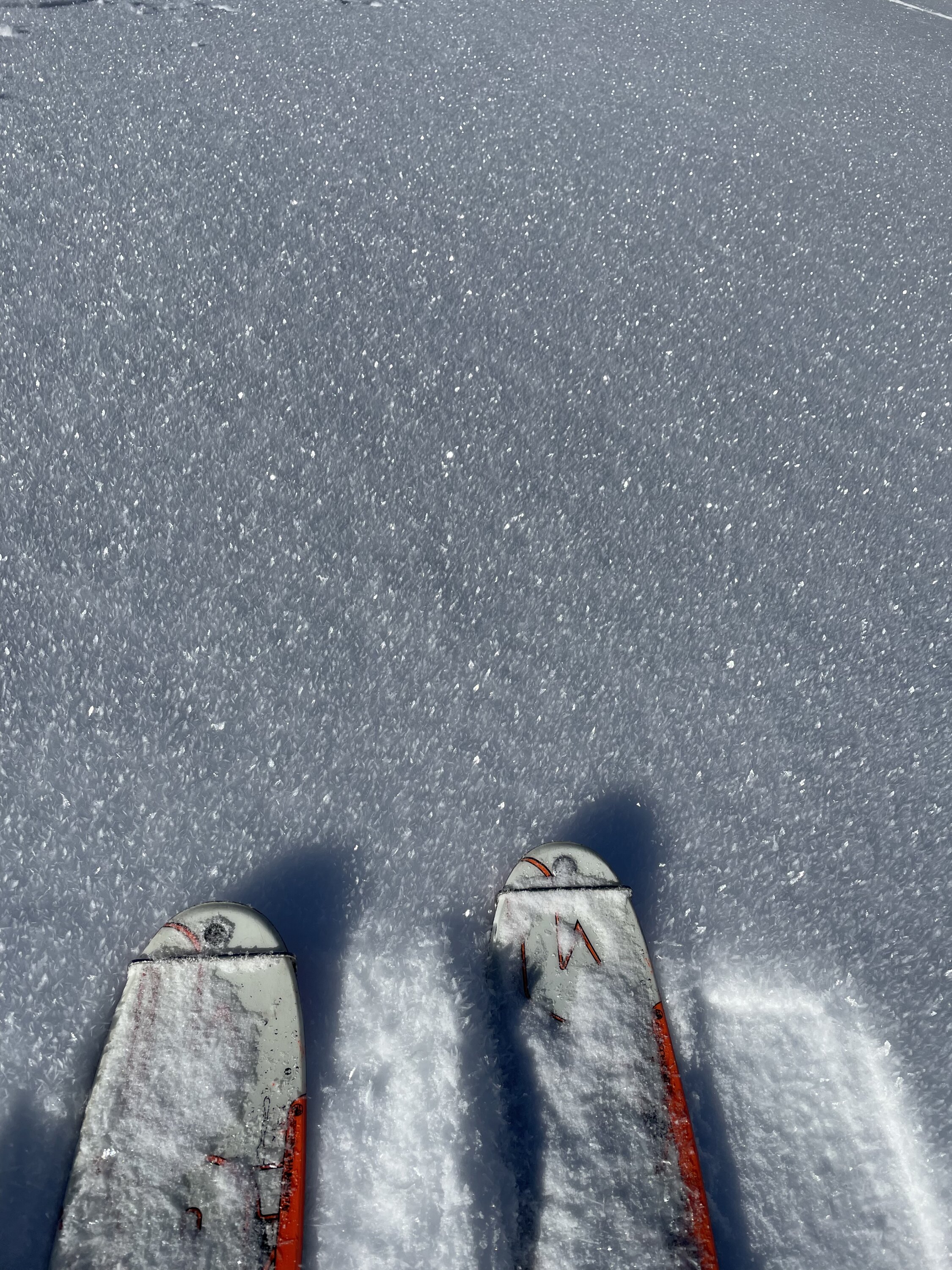 Morgen vielleicht nochmal so gut wie heute, nächste Woche mit der Wärme vermutlich bald nicht mehr so möglich. Es hat nicht viel Schnee, nur gerade genug für diese Tour. Massive Wärme übersteht das nicht.