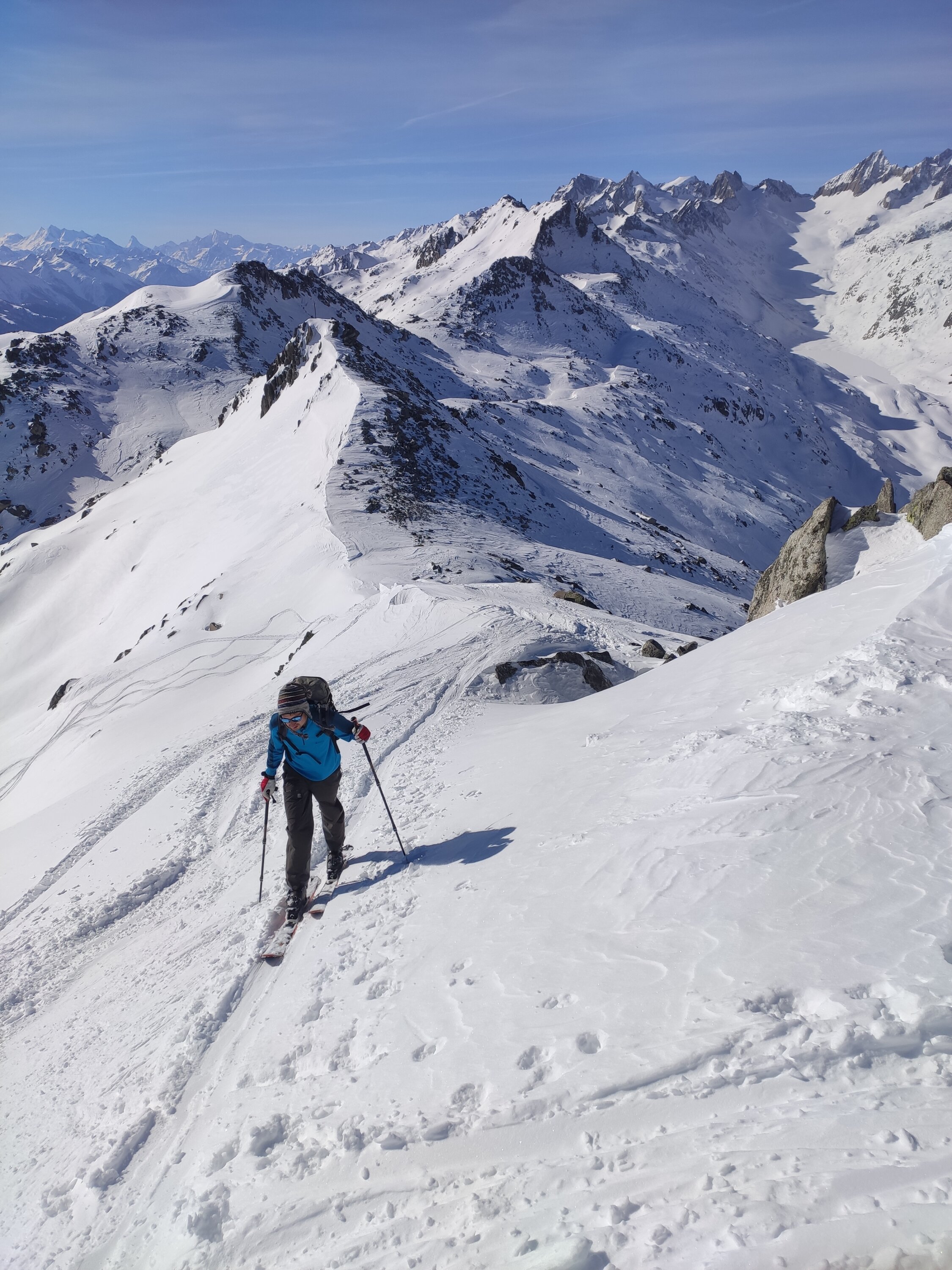 Gute Spur,Schnee recht variabel und immer gut zu fahren.Gestern hat es nur wenige cm geschneit,welcher ober verblasen ist.Gipfel mit Ski machbar.
