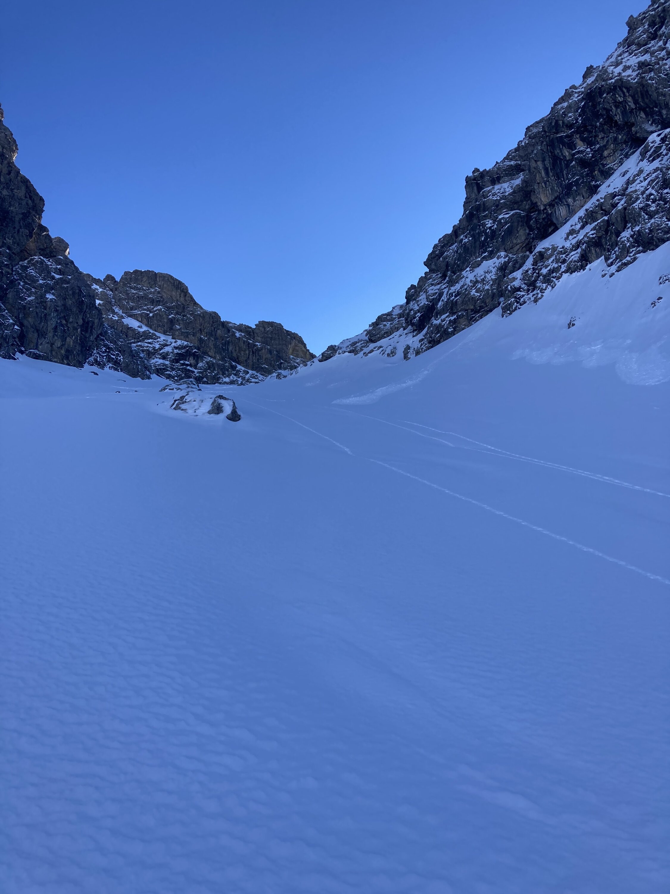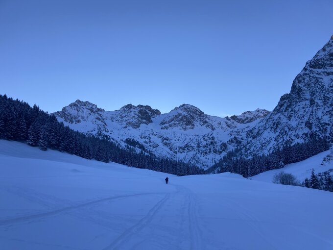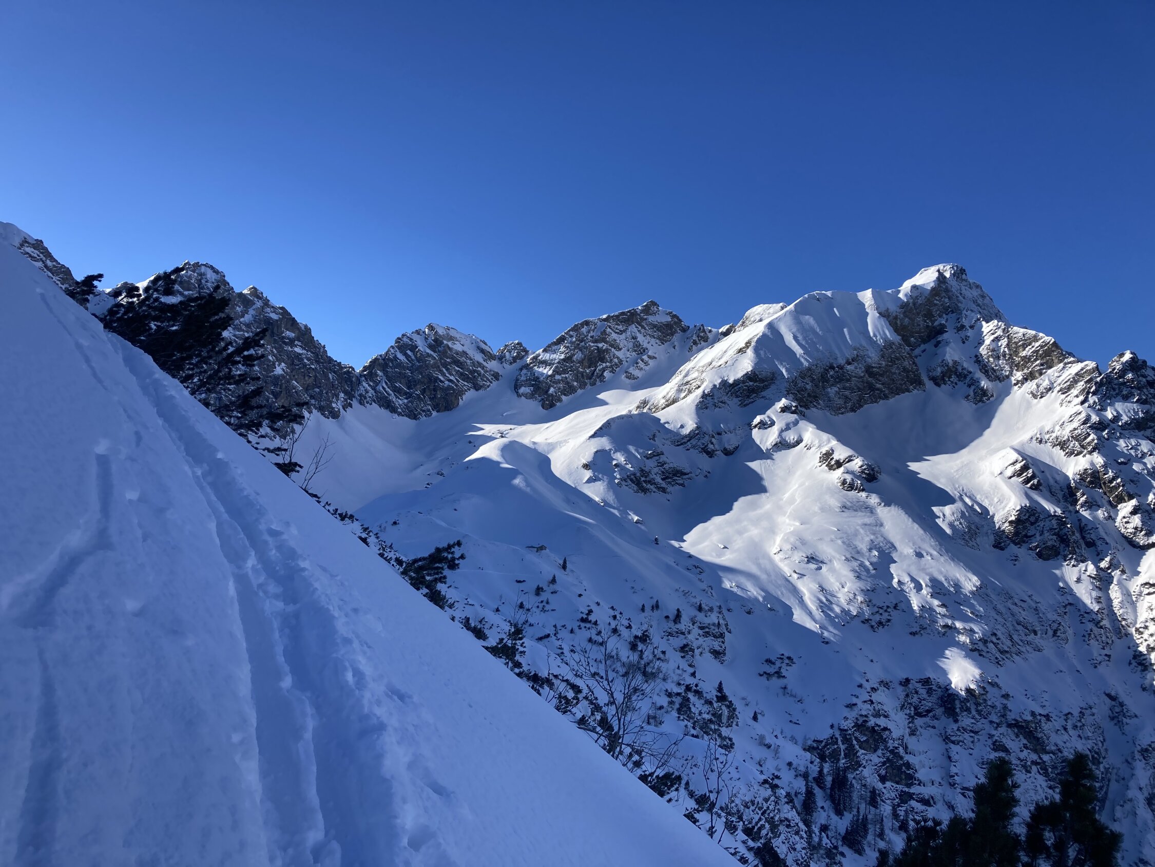 Ca 15cm lockerer Neuschnee. Dieser liegt meist auf einer Harschkruste und im oberen Bereich teilweise auf Windpress. In den windgeschützten Karen natürlich nochmal besser, aber allgemein überall sehr gut zu fahren. Der 2er im Lawinenlagebericht sollt aber eher ernst genommen werden. Teilweise recht schlechte Bindung zur Harschkruste und Schwachstellen am Übergang wenig zu viel Schnee. Unter der Harschkruste teilweise kantige aufgebaute Schwachschicht. Es sind einige Lockerschneerutsche und auch kleinere Bretter zu sehen gewesen. Ansonsten erwartungsgemäß viel los im Wildental. Es wurde quasi alles gemacht - Elfer, Elferrinne, Liechelkopf, Hochgehrenspitze, walser Hammerspitze… Es geht schon einiges, aber nix übertreiben.