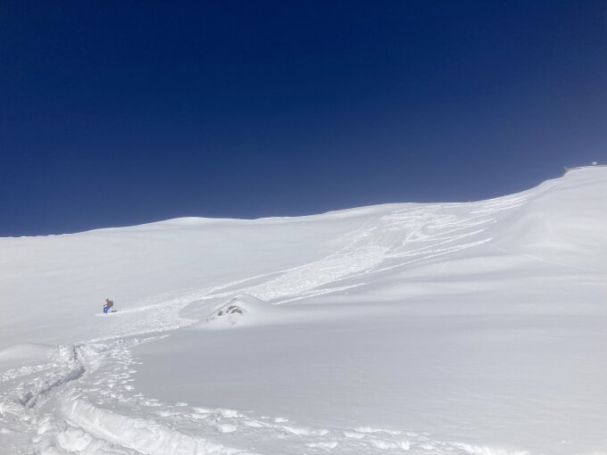 Gipfelhang wird wegen heutiger Durchnässung schlechter werden, der Rest sollte pulvrig bleiben.