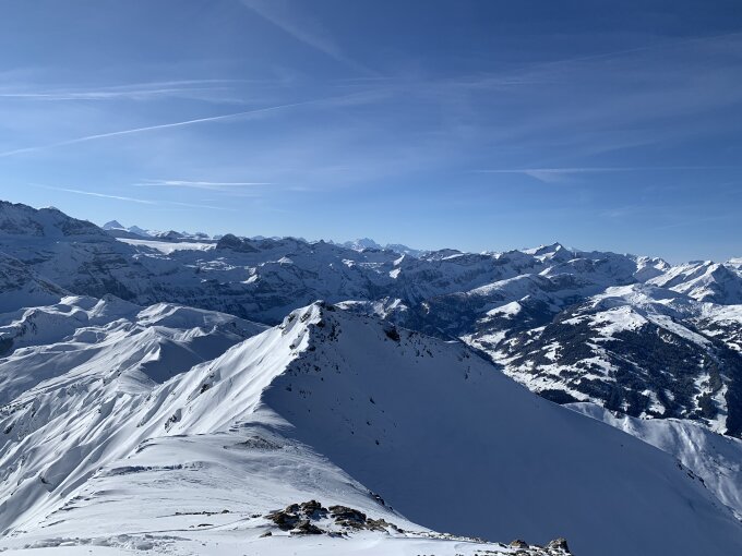 Färmeltal bis 1434 m befahrbar, danach Fahrverbot aufgrund Lawinensituation. Um 8 Uhr nur zwei weitere Fahrzeuge vor Ort, fand ich noch erstaunlich. Mit -9 Grad ordentlich kalt. Auf z.T. bereits wieder verblasener Spur eines früher gestarteten Alleingehers über beschriebener Normalroute zum Gipfel des Albristhorns. Durchgehend 10 cm frischer Pulverschnee auf harter Unterlage, Ski rutschten auf der teilweise recht steilen Spur immer wieder ab. Streckenweise etwas flacher neu gespurt. Gipfelgrat zu Fuss, Spur war aber mit Ski angelegt, sah ich aber erst, nachdem der Ausstieg auf den Grat zu Fuss gemacht war. Mit Ski am Grat auch gut machbar. Pickel / Steigeisen nicht erforderlich. Abfahrt top, 2nd line.