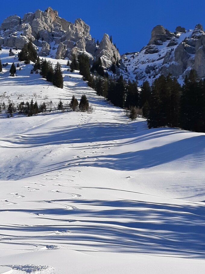 10-30cm Pulverschnee auf tragender Unterlage.