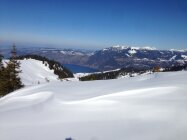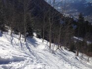 Durchgehend befahrbar. Weg schön pulvrig schnell. Gipfelhang Pulver. Zw 1400 und 900 m.ü. M hart mit wenig Pulver
