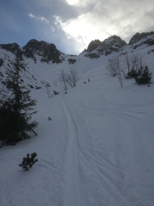 Start 7 Uhr am Parkplatz Fellhornbahn ( aktuell 4 EURO Tagesgebühr ) über Piste zur Mittelstation - Ziehweg ins Warmatsgund Richtung Fiderepaß bis Abzweig und Querung oberhalb des Birkenbewuchses zum Alpgundjoch. Am Grat so weit als möglich mit Ski hinauf, dann zu Fuß immer dem fast schneefreien Grat folgend in teilweise leichtem Gekraxel zum Gipfel - Abfahrt gleiche Route im wenig verfahrenem Pulverschnee.