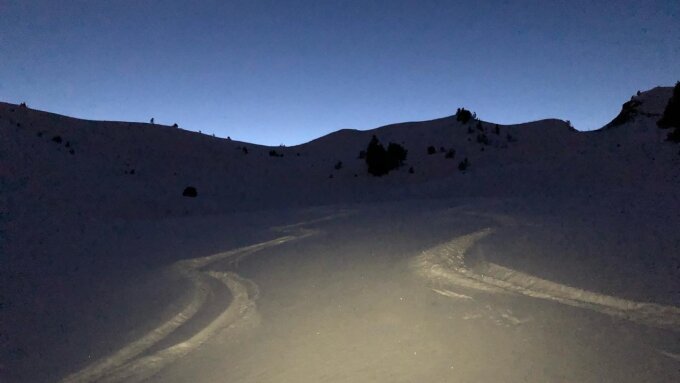 In der Abfahrt waren je nach Exposition noch tolle Pulverschneeverhältnisse