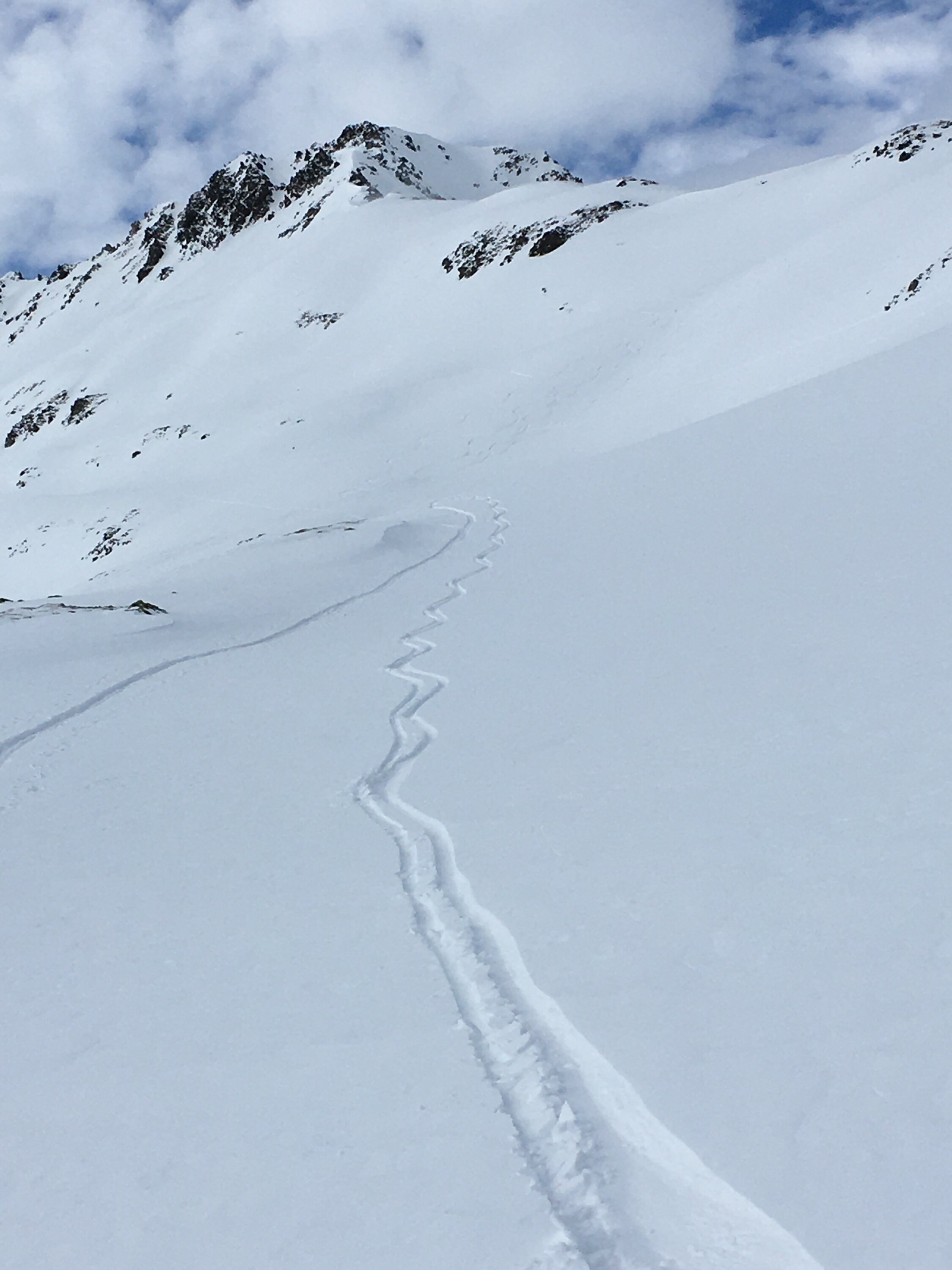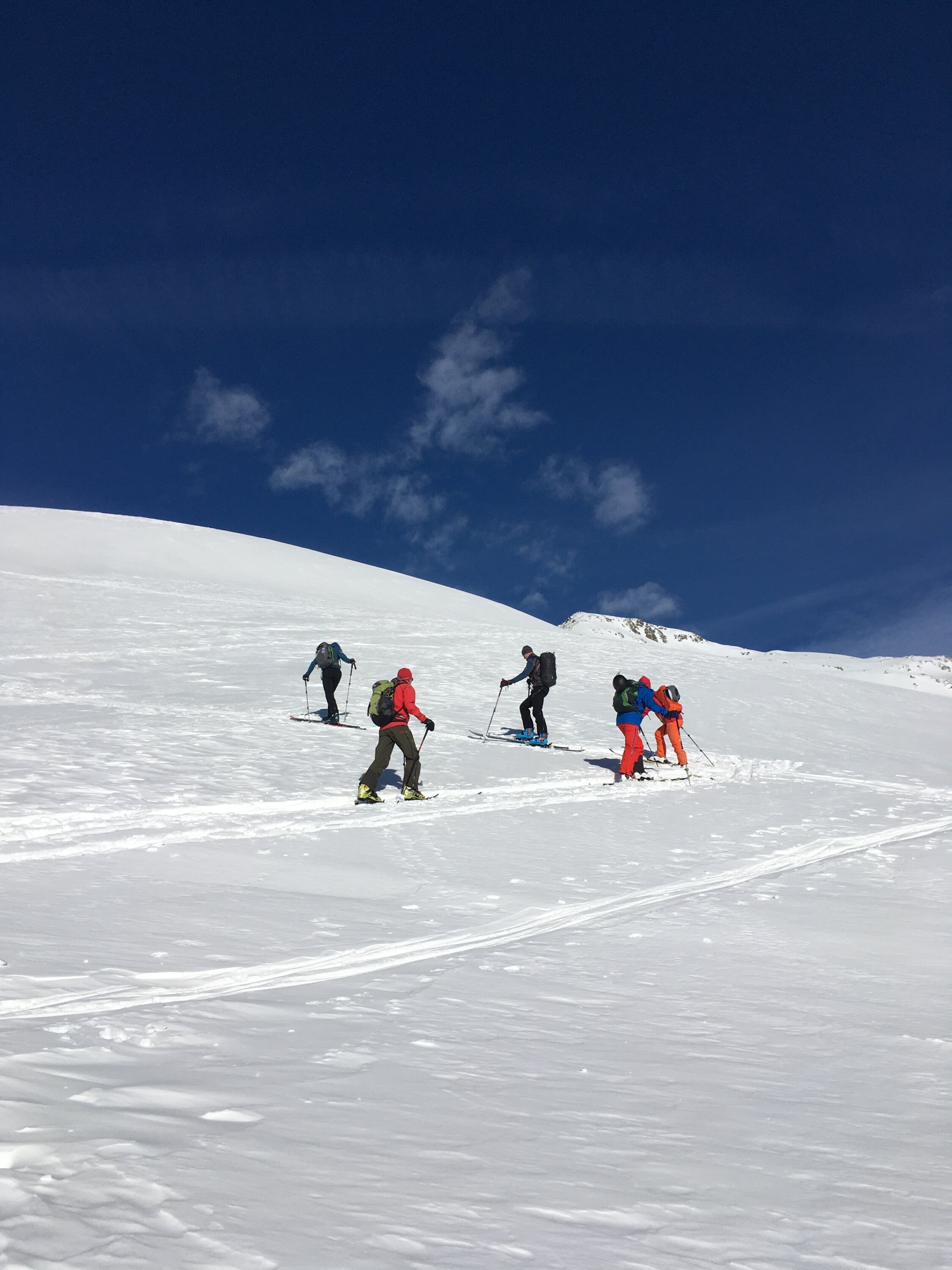 Das Wetter spielte heute nicht ganz mit. Auch die Abfahrtsroute via Grat Viroula war keine gute Idee. Die schönen Westflanken wären toll gewesen rür Abfahrt, Pulverschnee. Der Schnee ist halt auf den Rücken teilweise vom Sturm stark bearbeitet worden, in der Viroula Mulde schöner Pulverschnee. Piz Belvair wurde auch gemacht mit schöner Abfahrtsspur.