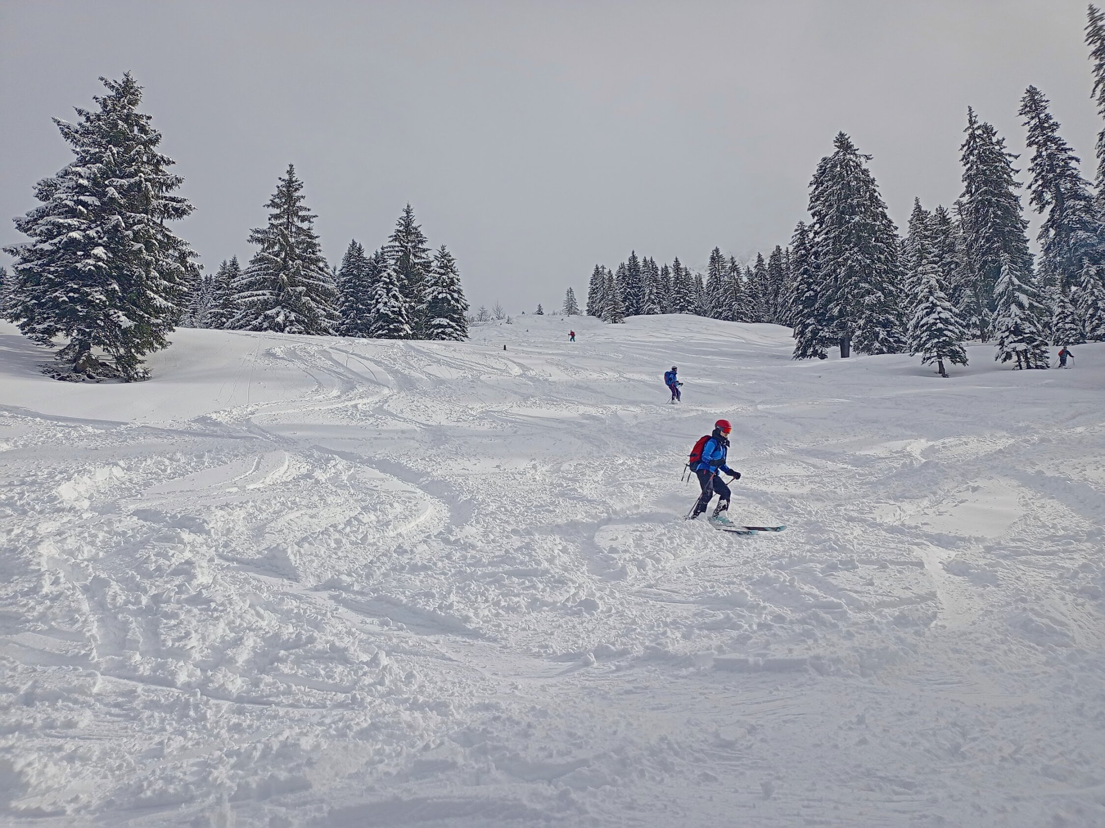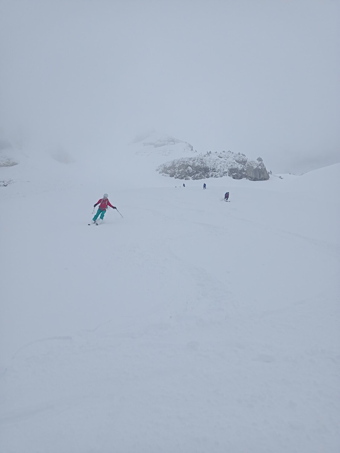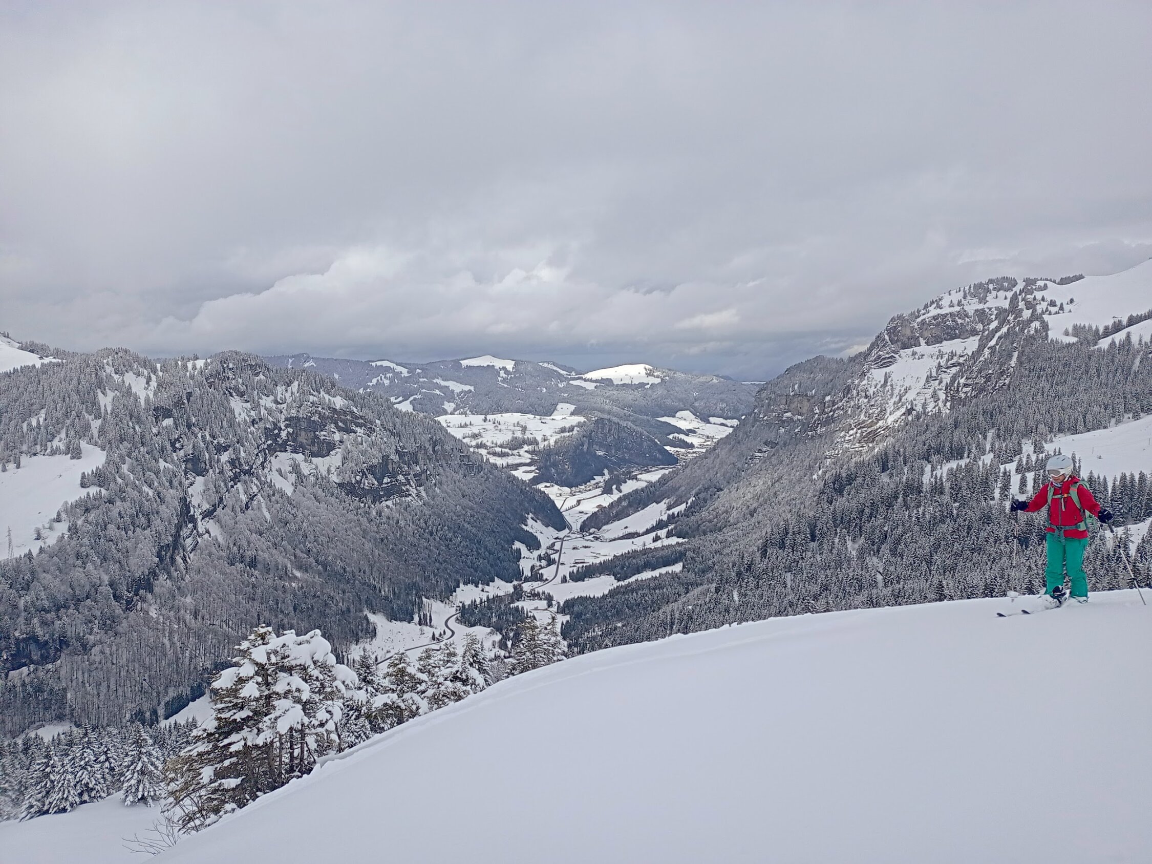 Angepeiltes Ziel war der Rütistein. Der Gipfelbereich war sehr abgeblasen und Nebel kam auf da haben wir zum Pfannenstöckli abgeschwenkt. Auch dort starker Wind und ohne Rast direkt im Pulverschnee in die Druesberghütte abgefahren. Ab ca. 1800 hat der Wind alles leergefegt, darunter schöne Pulverauflage von ca. 10-20cm. Andere Personen sind bis zum Rütistein aufgestiegen, sicher machbar.