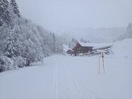 Einkehr in der Druesberghütte, dann kamen Aufhellungen und wir haben noch unter den Twäriberg gequert für einen schönen Abfahrtsgenuss.