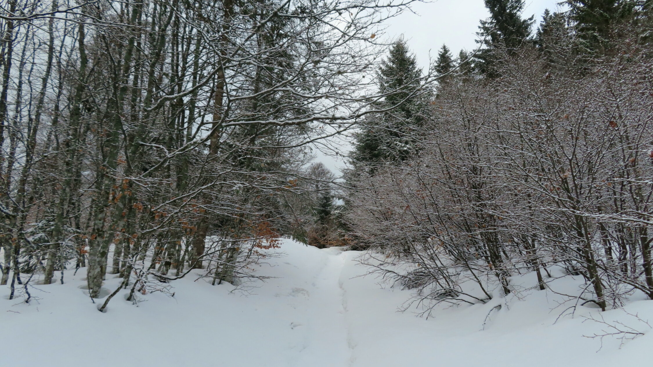 Die Kaltfront der Nacht hat Minusgrade und ab ca. 1100 m einen Flaum Neuschnee gebracht. Daa Wetter war ausgezeichnet. Die Bewölkung am Morgen lockerte rasch auf und es wurde eine sonnige Tour. Stärkerer Südwestwind war nur im Bereich der Krunkelbachhütte zu verzeichnen.