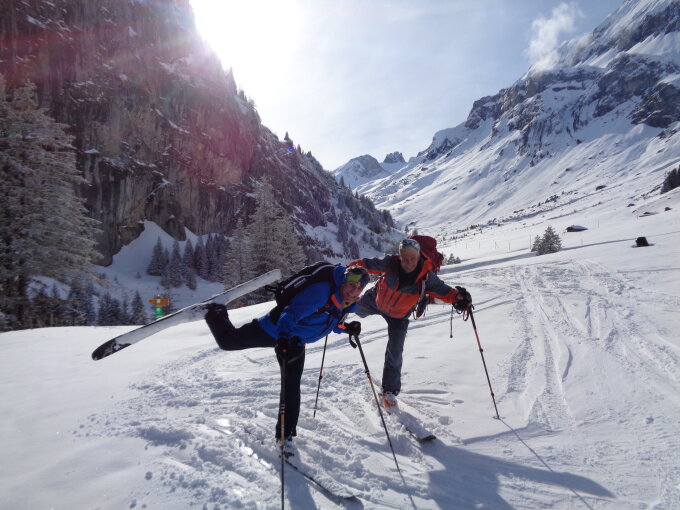 Abfahrt: Die Skiabfahrt durchs Ueschenental war ein Traum! D.h. die oberen zwei Drittel 10cm bis 20cm Pulverschnee auf einer tragenden Unterlage.