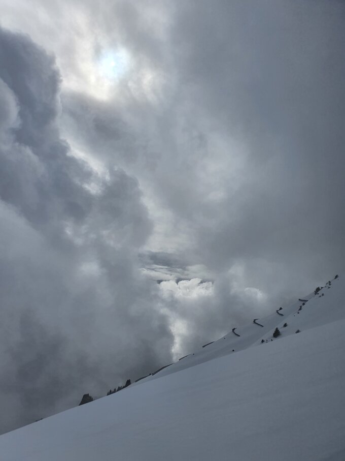 Leider gabs fast kein Neuschnee. Bis Gälliplana Ski tragen, kein Schnee mehr. Die ersten 200hm vom Gipfel waren pulvrig. Danach bis 1700hm Bruchharsch der leichtüblen Sorte. Unten dann gut zu fahrender Nassschnee. Abfahrt über Frumaschan, Därastobel.