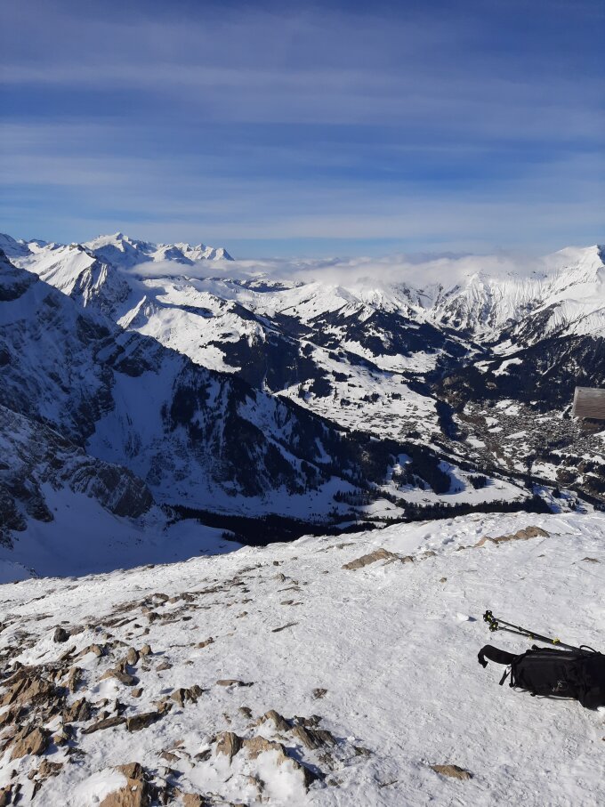 Entgegen den Erwartungen gab es ein Schönwetterfenster mit etwas Wind und viel Sonne auf dem Gipfel. Die oberen Hänge waren dann superschön zu fahren.