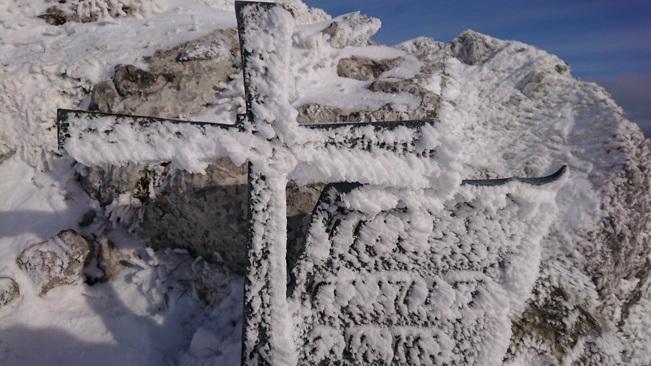 Weg. Gipfelbereich wunderschöne Eiskristallskulpturen.