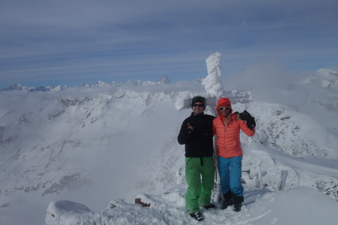 Am Gipfel um 13:00 mit bester Fernischt, jedoch ist derzeit der Ofen am Ofenhorn anscheinend kaputt und es war entsprechend kalt.