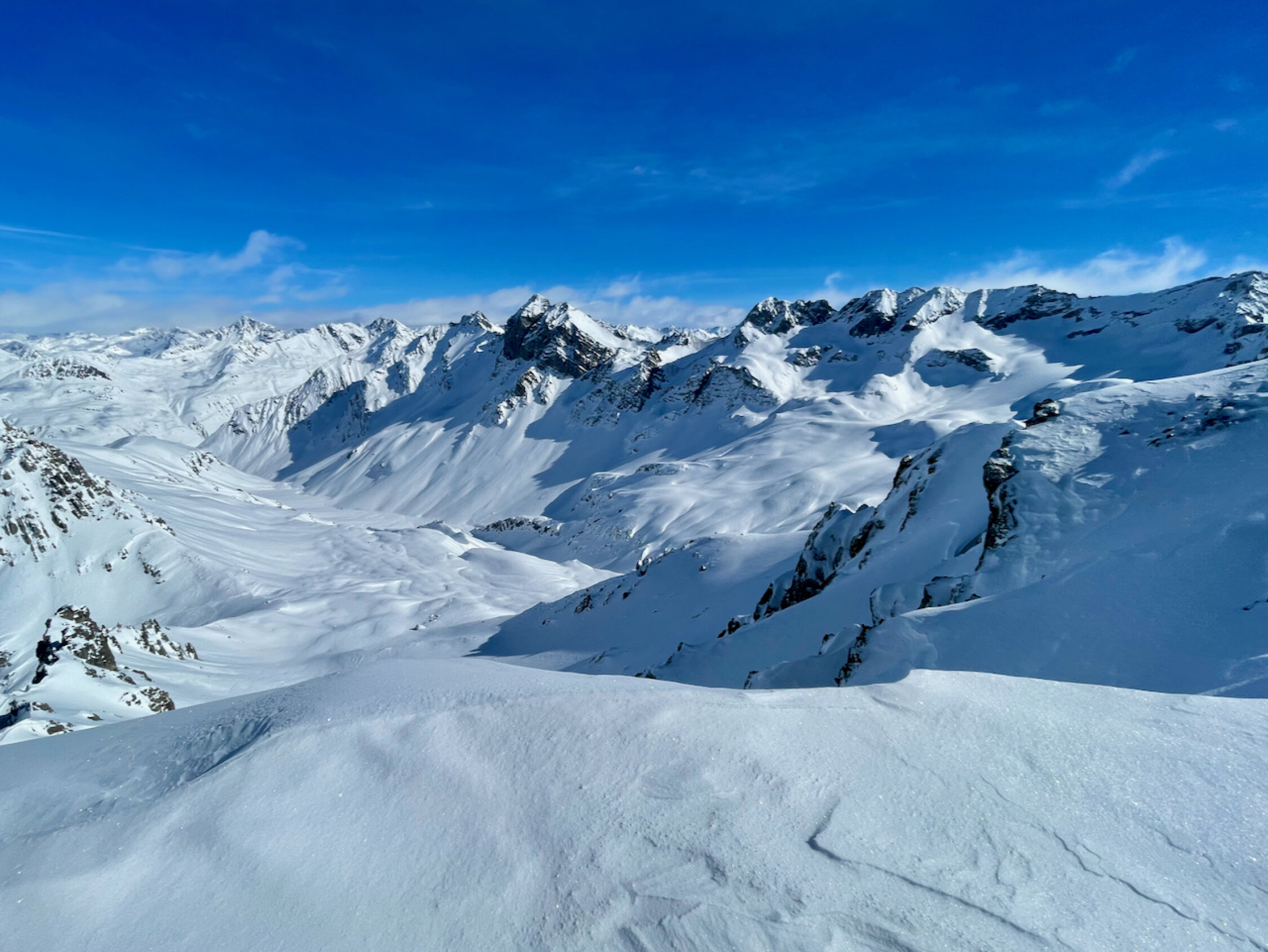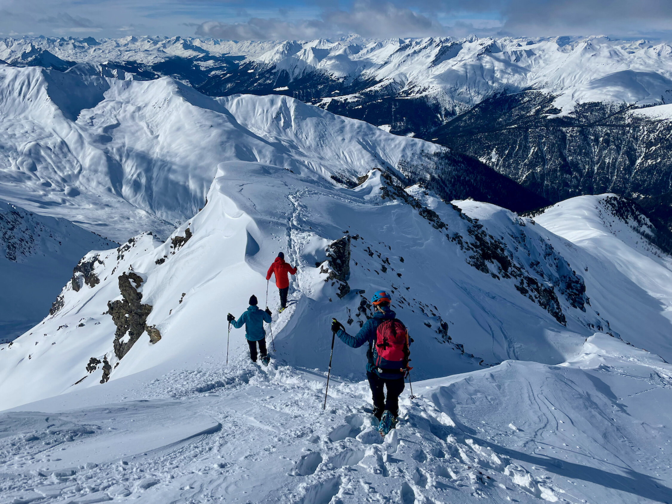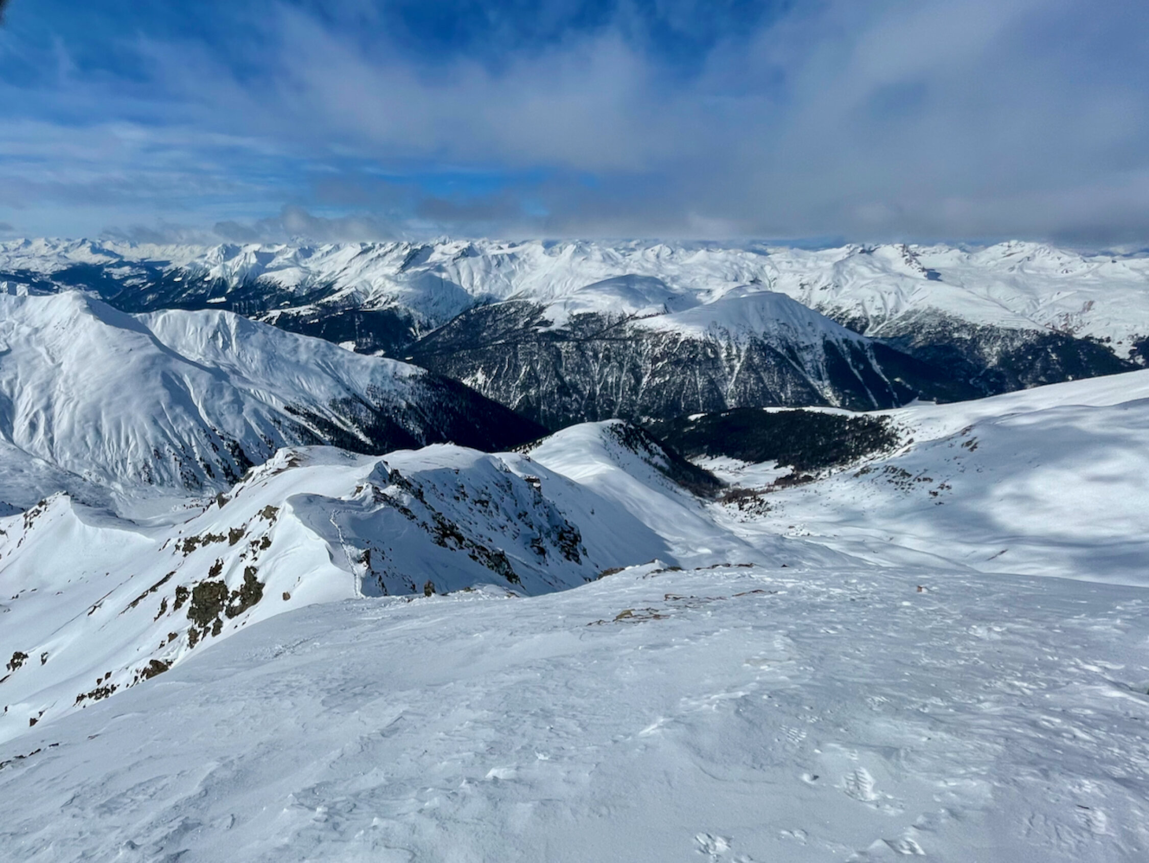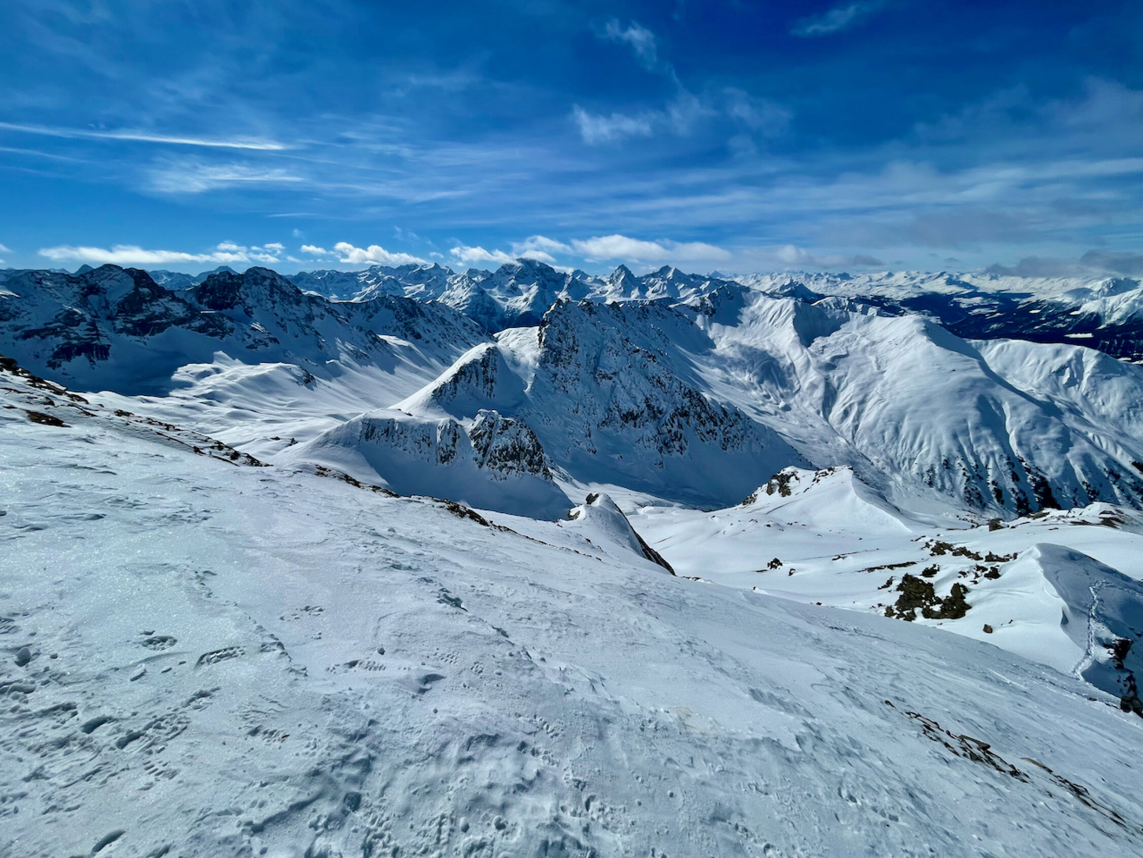 Erstaunlich gute Schneequalität in der Abfahrt im Gegensatz zum Vortag (Sa) auf's Älplihorn (Bruchharsch). Exposition NW und N ist die Zauberformel, denn die hat noch ziemlich guten Pulver und weiter oben sogar ein paar Firn-Abschnitte. Die Lauf- und leichten Kletterpassagen waren ohne Probleme machbar. Der Fahrweg raus nach Monstein war am Sonntag mit den höheren Temperaturen schön zu fahren (am Samstag pickelharte "Piste")