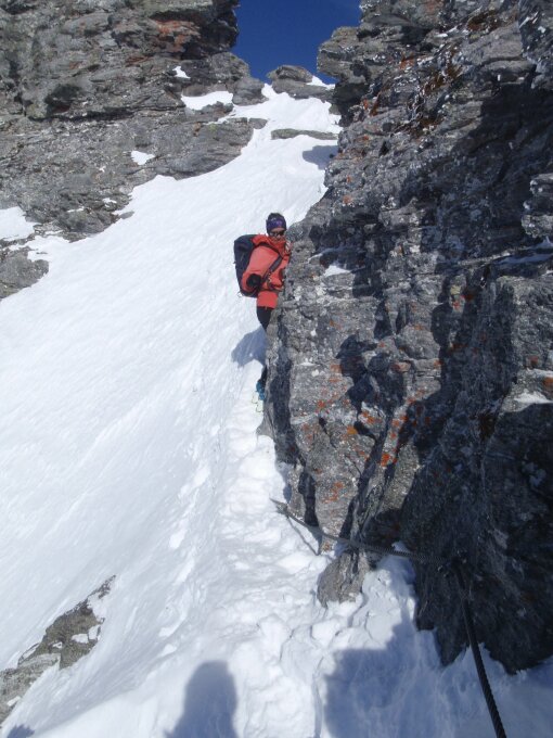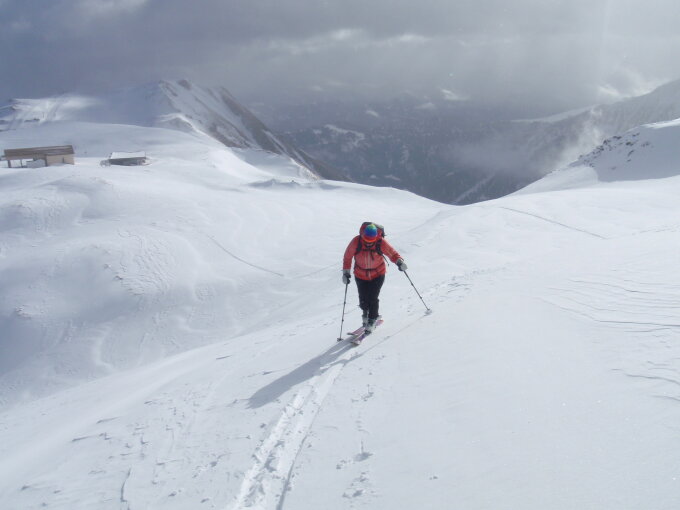 Bei der Pizolhütte viel Wind (die oberen Lifte waren teilweise ausser Betrieb) und recht gute Sicht, wenig Neuschnee. Auf dem Pizolgletscher war der Neuschnee wechselnd zwischen windgepresst, pulvrig und verblasen. In guter Spur und einem Dutzend Spitzkehren in den Pizolsattel und zu Fuss dem teilweise eingeschneiten Drahtseil entlang auf den Gipfel.