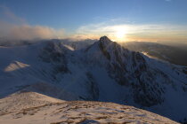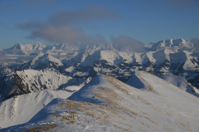 Gute Spur auf den Morgetepass, am Schluss müssen die Ski ein paar Meter getragen werden. Abfahrt durch die Nordflanke. Genügend Schnee auf der ganzen Route, oben Pulver, unten ein wenig Bruchharsch