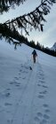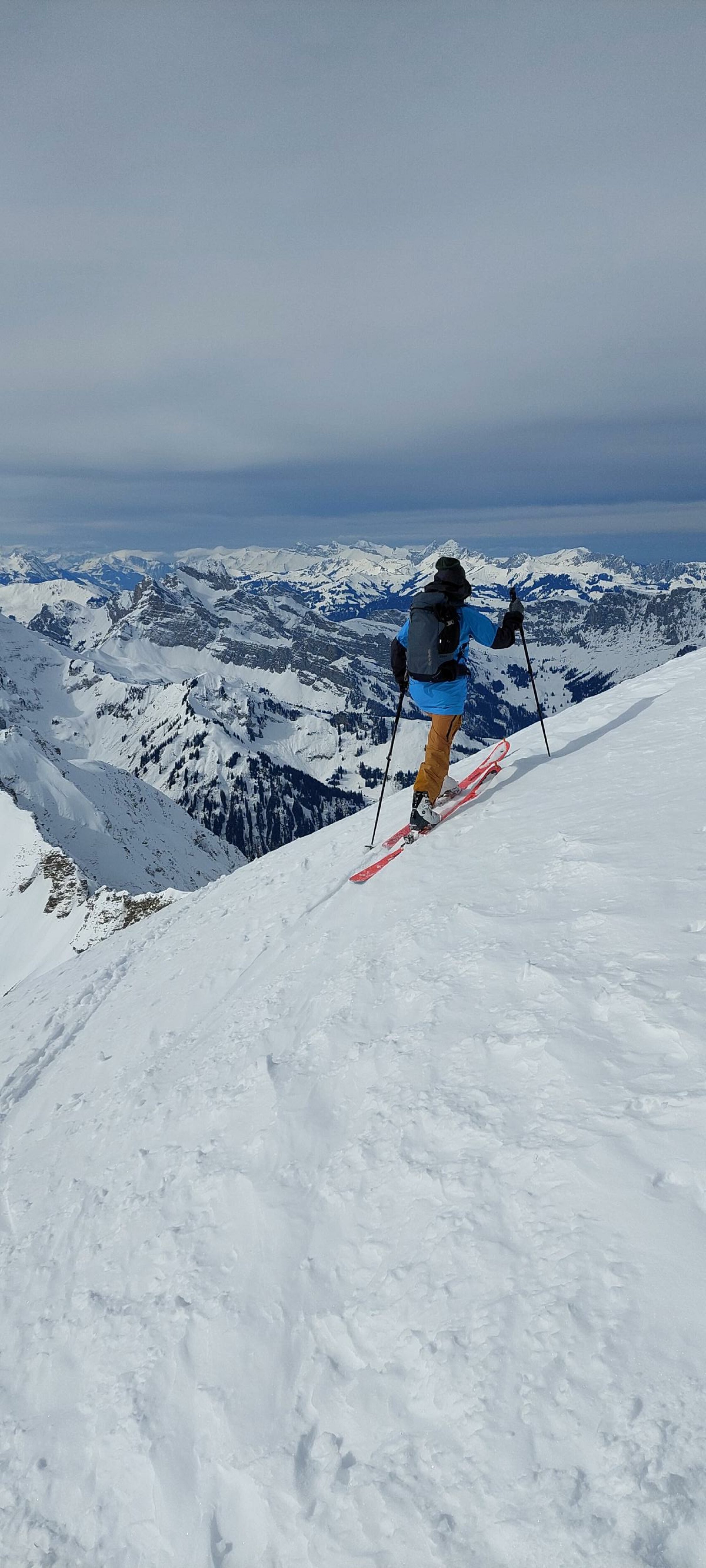 Aufstieg: Vom Hindere Fildrich links haltend den Wald hoch. Der Weg ist gut eingeschneit und kann mit Skis begangen werden. Die Aufstiegsspur führt meisten durch Bruchharst und ab und zu durch Pulver. Der Schlusshang zum Gipfel ist gut gespurt, Harscheisen brauchten wir nicht.