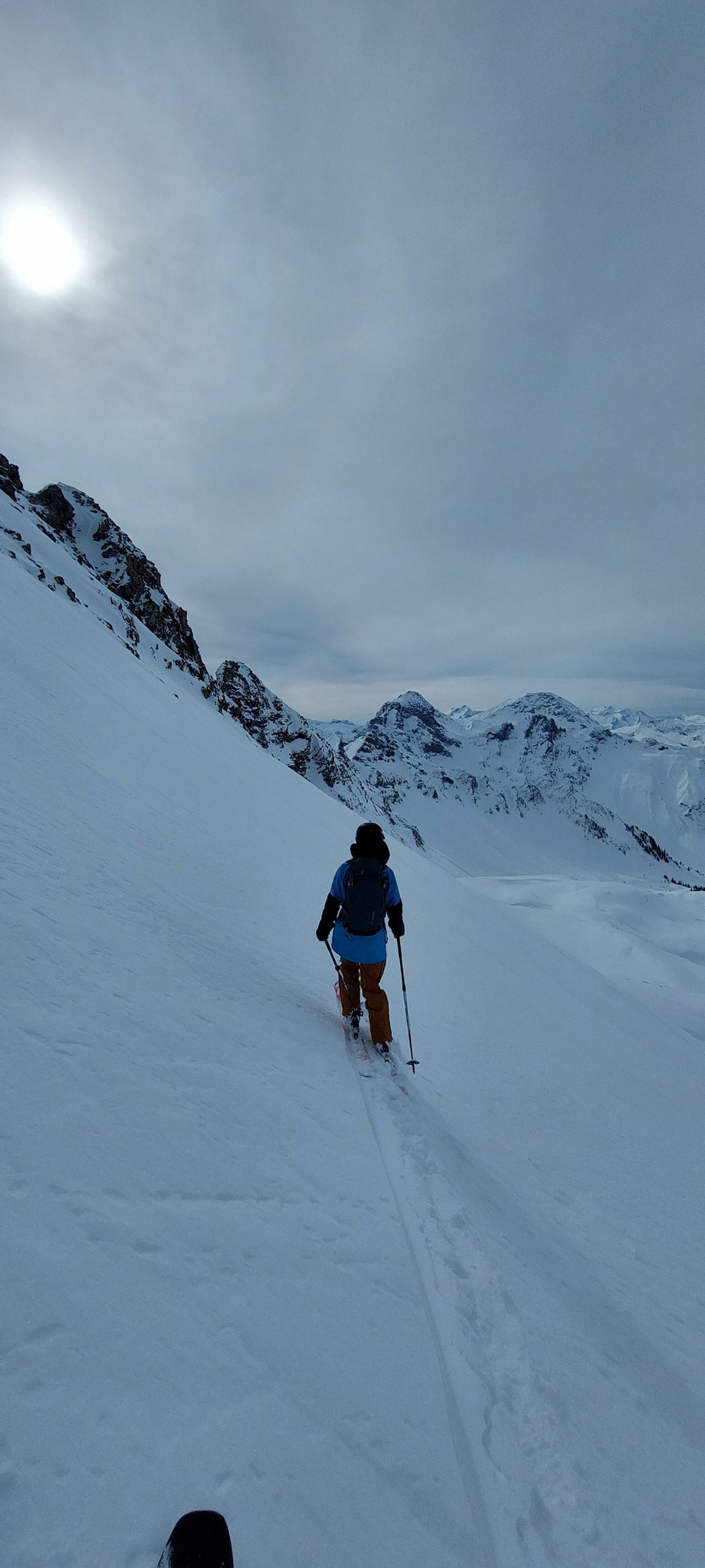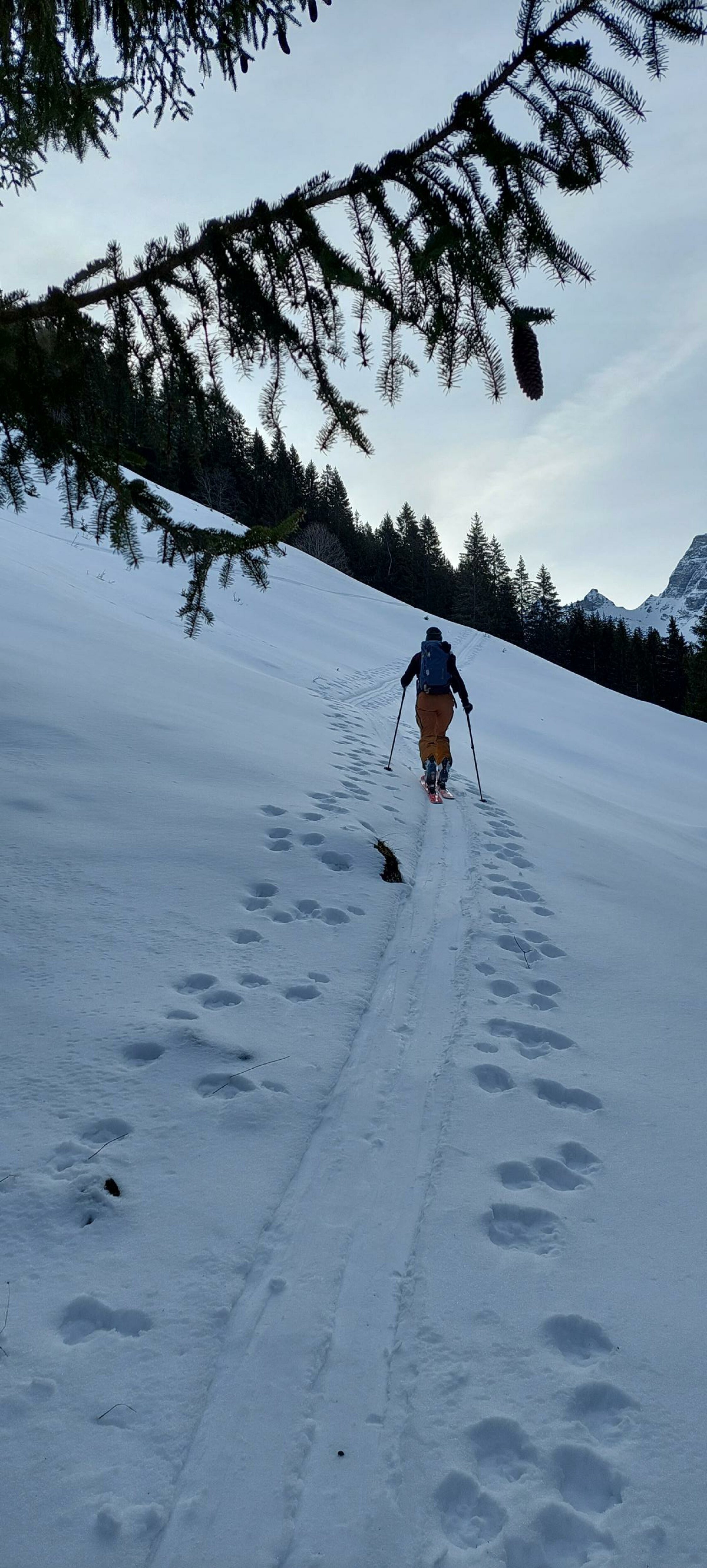 In den West- und Nordhängen Richtung Erbithore und dann hinunter Richtung Oberberg hat es Pulver. Dort linkshaltend Richtung Steibode und Fildrich bis zum Parkplatz immer noch Pulverschnee.