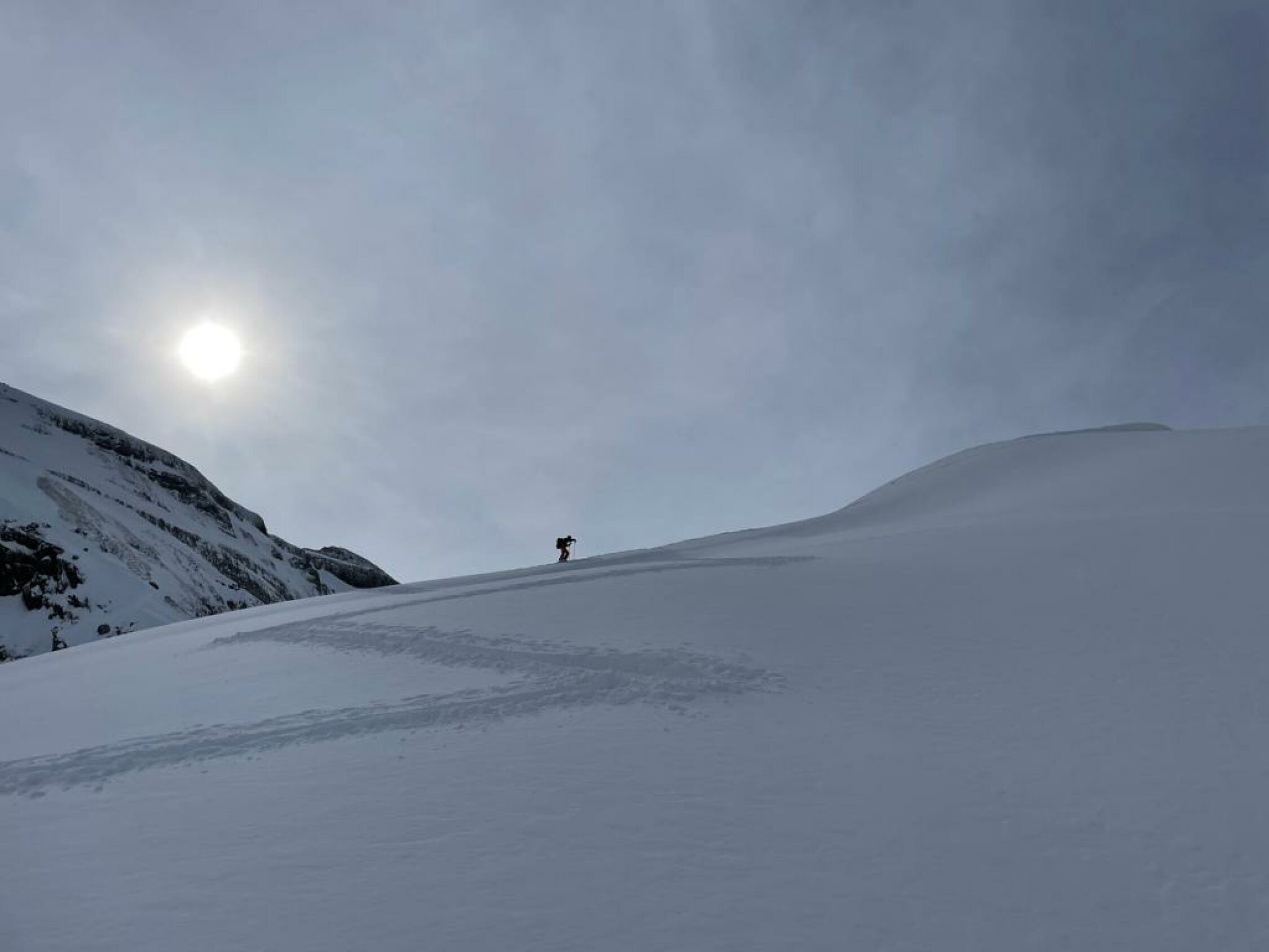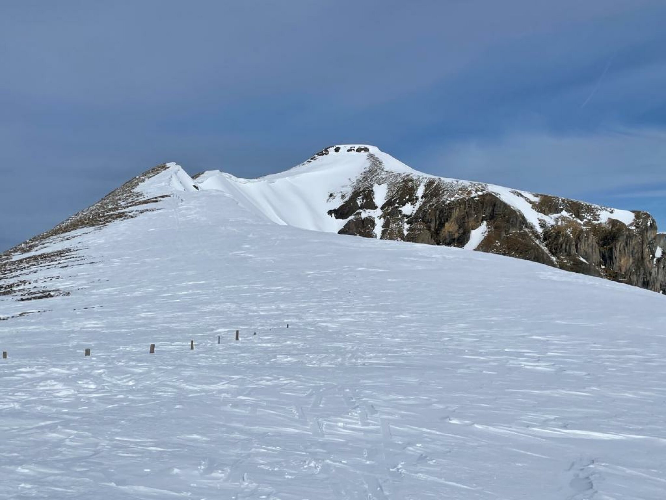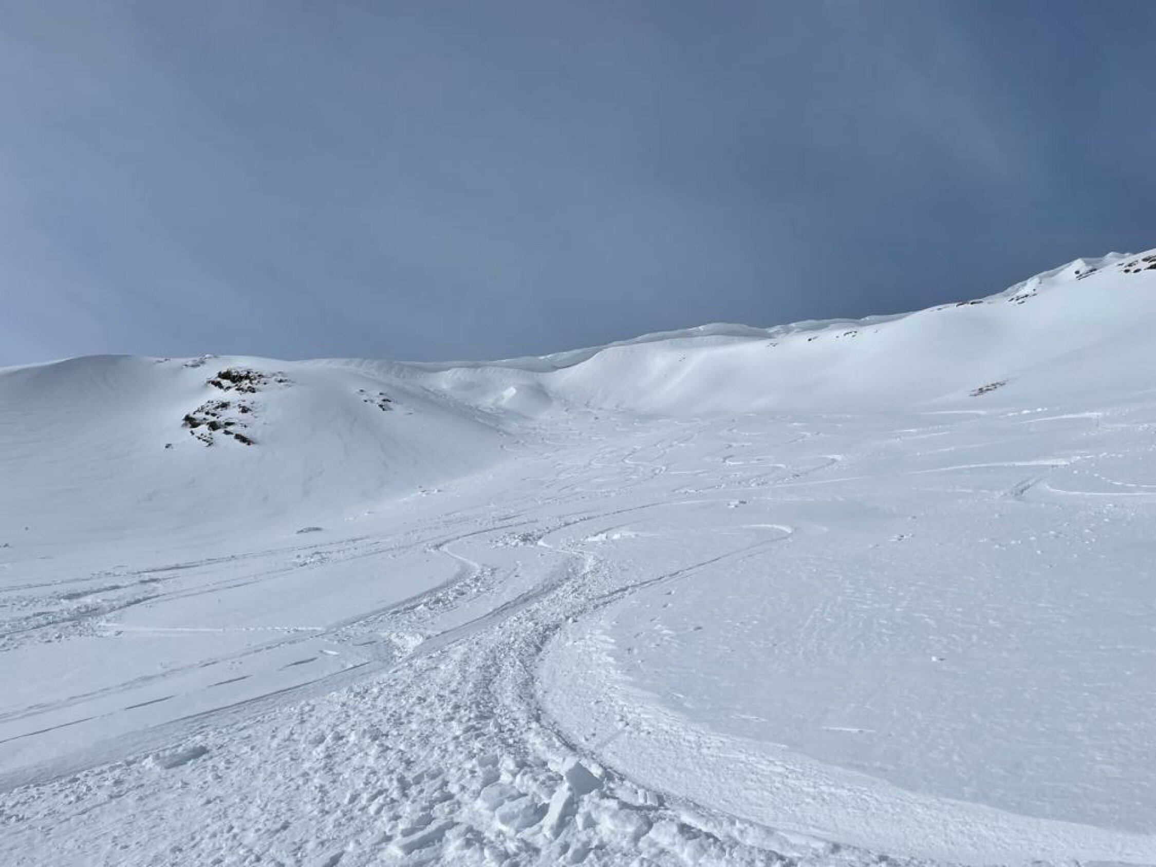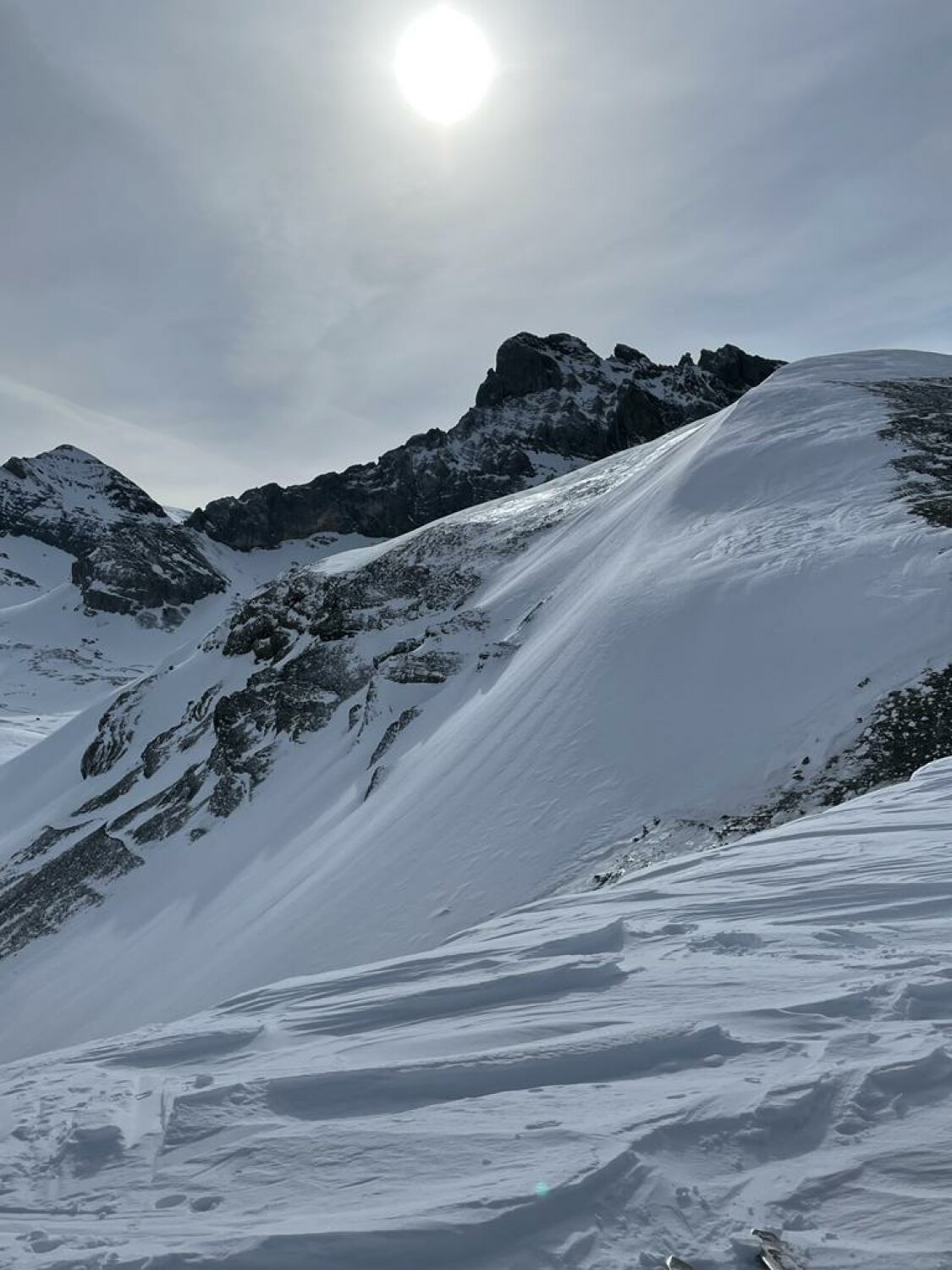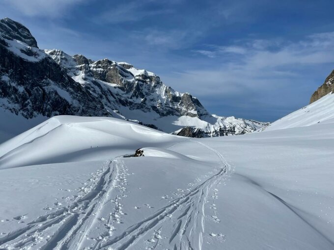 Abfahr nach St. Jakob Pulver. Alles was es westseitig abgeblasen hat, liegt in den Nordosthängen.