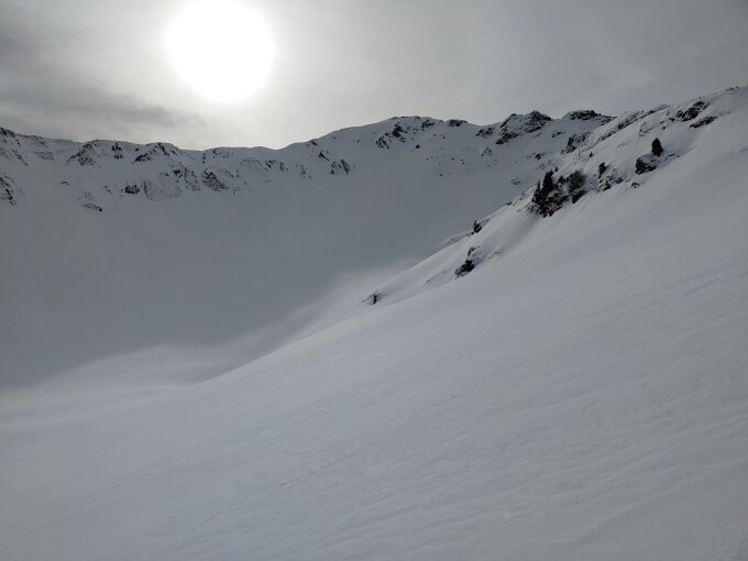 Abfahrt dann weiter im Hang drin dafür umso besser. Rest Abfahrt tiptop cruisen im Pow.