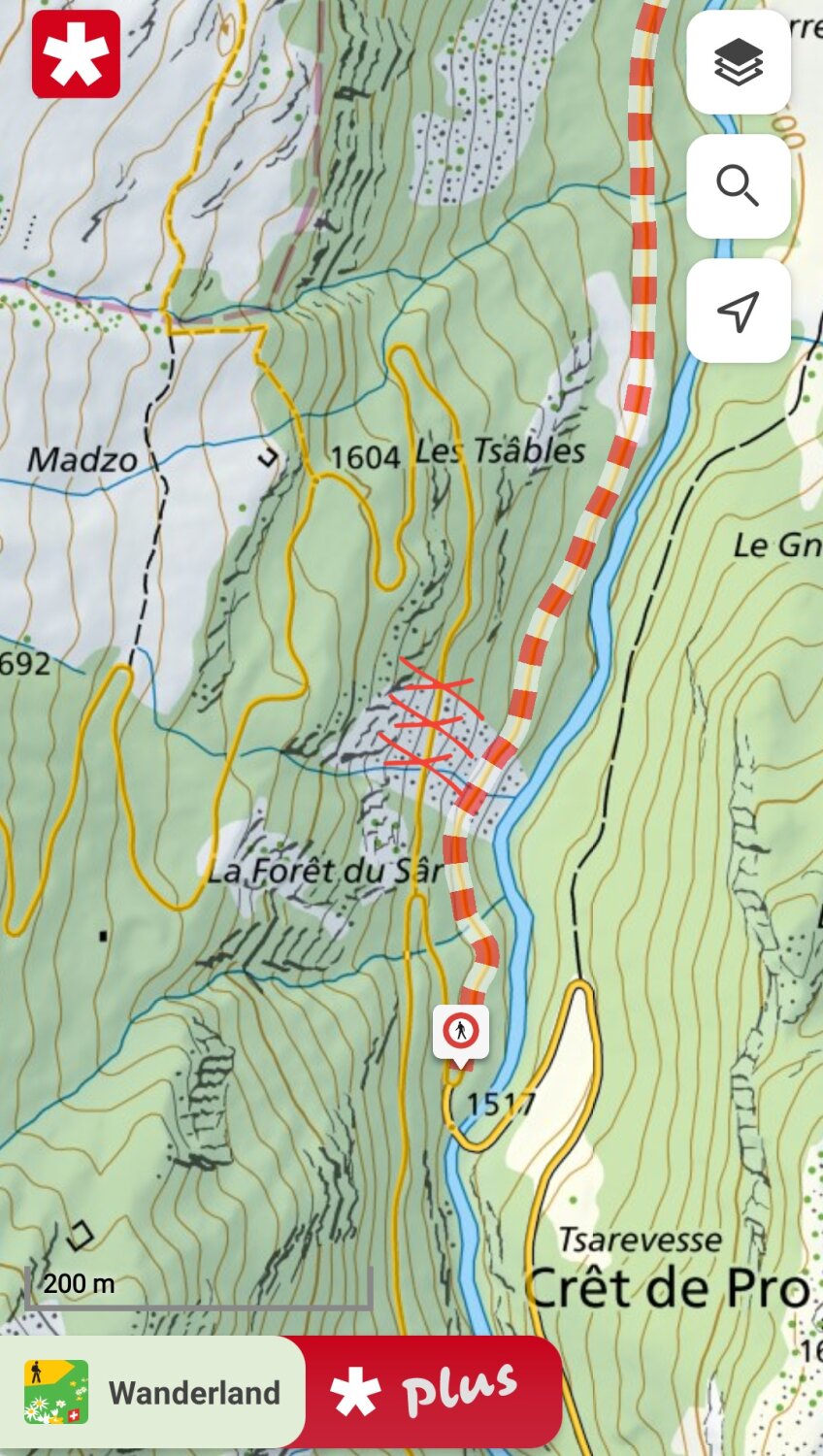 Unten der Wanderweg durch den Erdrutsch - wie auf dem Bild - aper, verschüttet und gesperrt aber mit brauchbarer Spur.