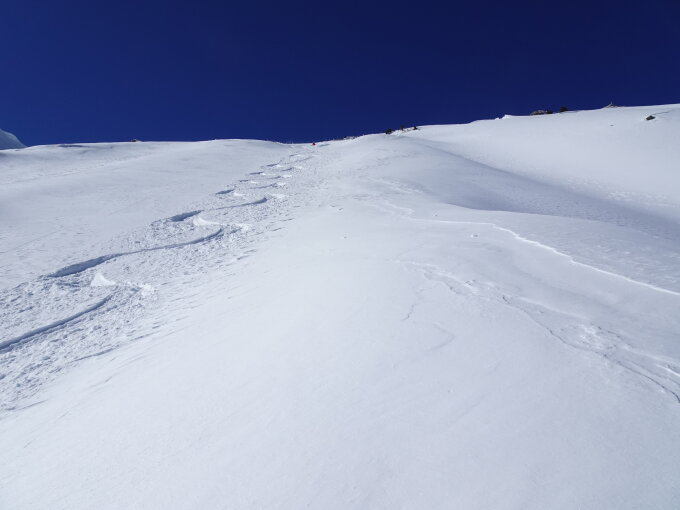 Danach Rengglipass über die teils Abgeblasene Westseite aufgestiegen