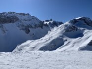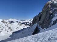 Aufstieg von Hubelmatte über Iffigenalp machbar. Teilweise Tragestellen und Taxiverkehr. Sonne hat sich erst am Mittag gezeigt. Aufstieg im Schatten und auf dem Gipfel kalt (-10 Grad) und windig. Abfahrt teilweise eisig sonst pulvrig.