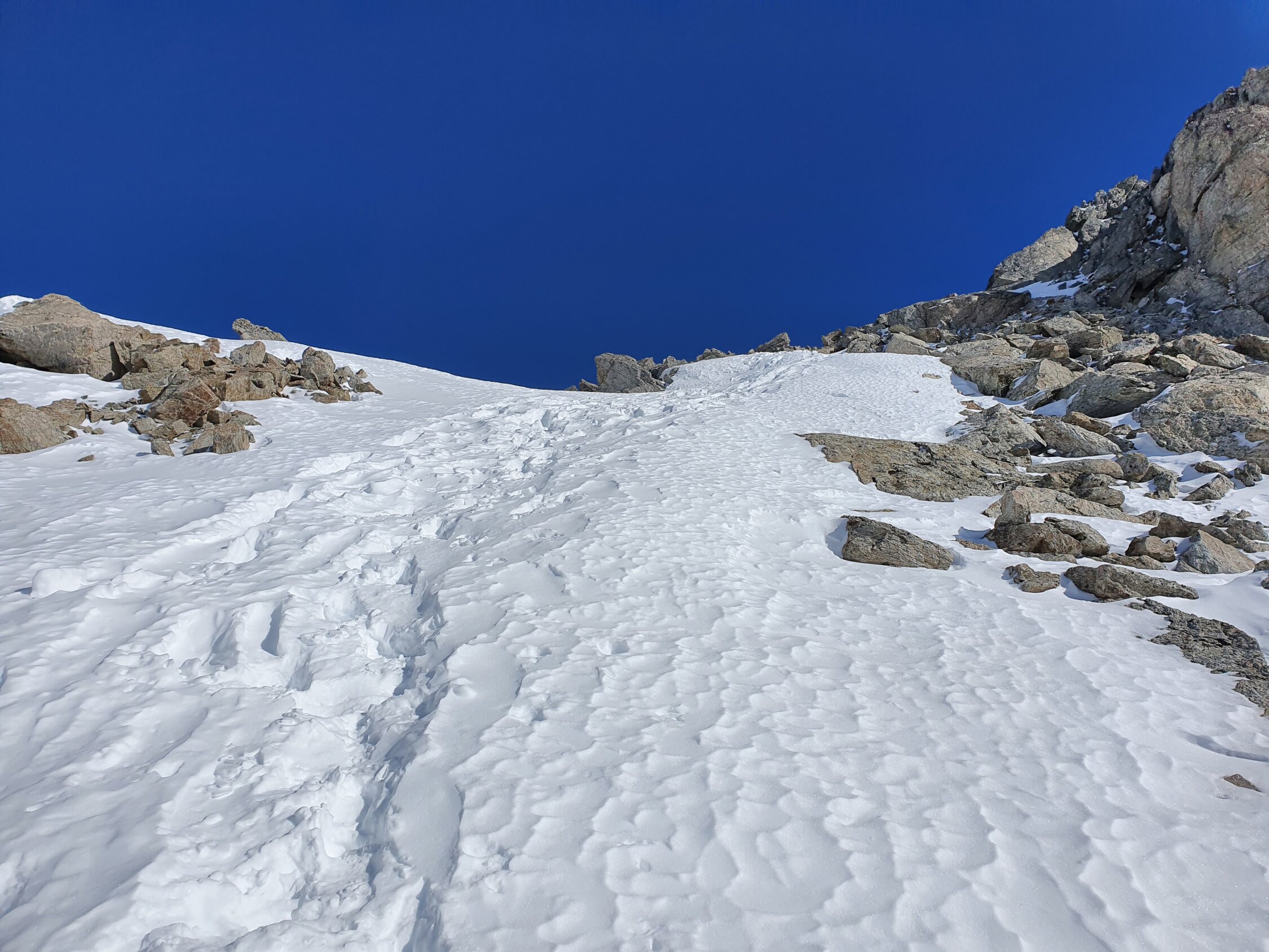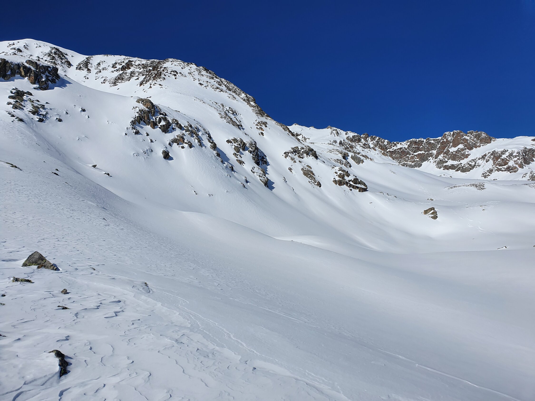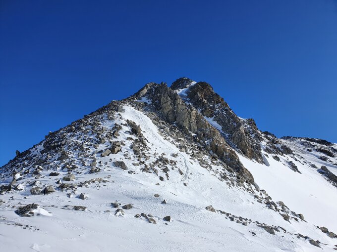 Hoch bis P2607 haben vor mir zwei Personen gespurt, die zum Piz da l'Hom gingen. Somit den Rest noch bis zum Gipfel selber gespurt. Eine alte Spur war jedoch noch sichtbar. Der Gipfelaufstieg von der Fuorcla Punt Ota geht momentan ohne Steigeisen sehr gut.