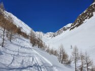 Traumpulver von der Fuorcla Punt Ota bis P2150. Danach unverspurt mühsam weiter durchs Val Susauna. Viel Stossen, resp. Laufen war für die sehr flache Abfahrt nötig... Vom Gipfel bis Chapella La Resgia brauchte ich 2 Std.